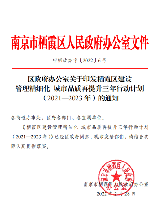 宁栖政办字〔2022〕6号 区政府办公室关于印发栖霞区建设管理精细化 城市品质再提升三年行动计划(2021—2023年)的通知.pdf