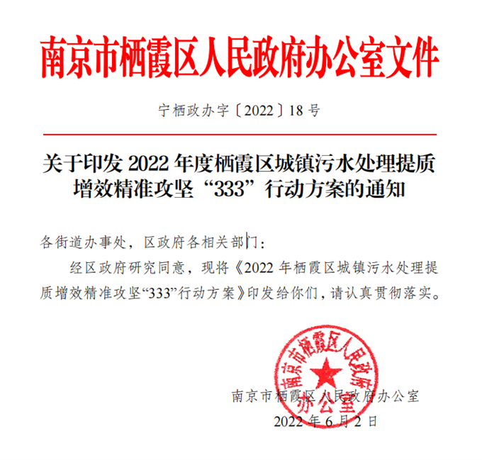 宁栖政办字〔2022〕18号 关于印发2022年度栖霞区城镇污水处理提质增效精准攻坚“333”行动方案的通知