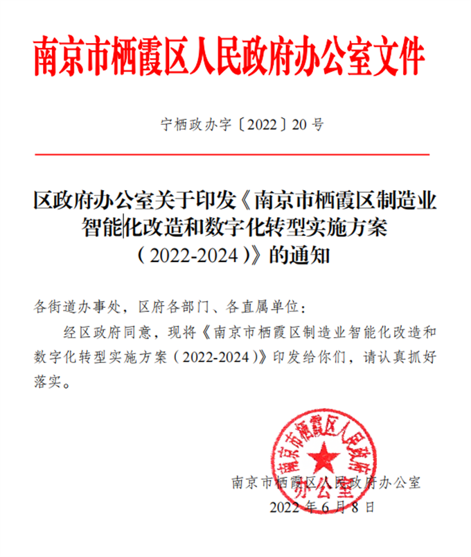 信息名称: | 宁栖政办字〔2022〕20号 区政府办公室关于印发《南京市栖霞区制造业智能化改造和数字化转型实施方案(2022-2024)》的通知 | ||