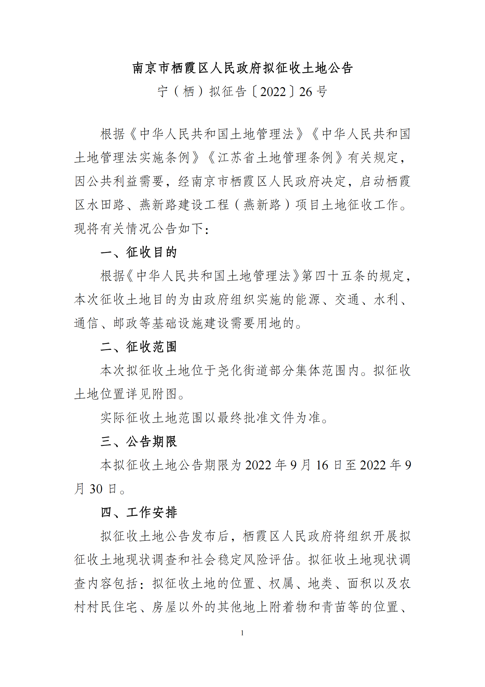 南京市栖霞区人民政府拟征收土地公告-宁(栖)拟征告〔2022〕26号