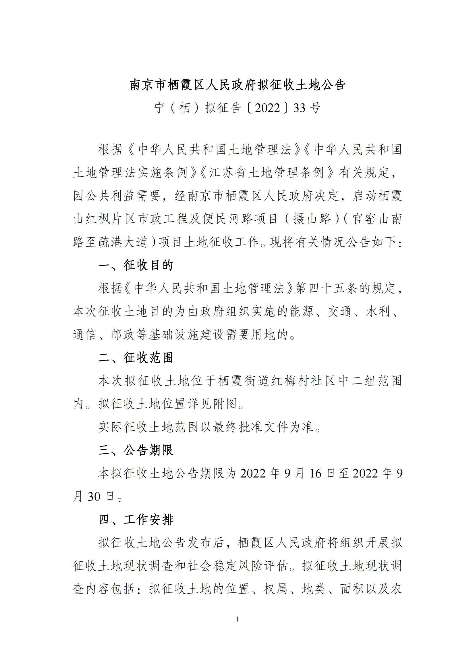 南京市栖霞区人民政府拟征收土地公告-宁(栖)拟征告〔2022〕33号