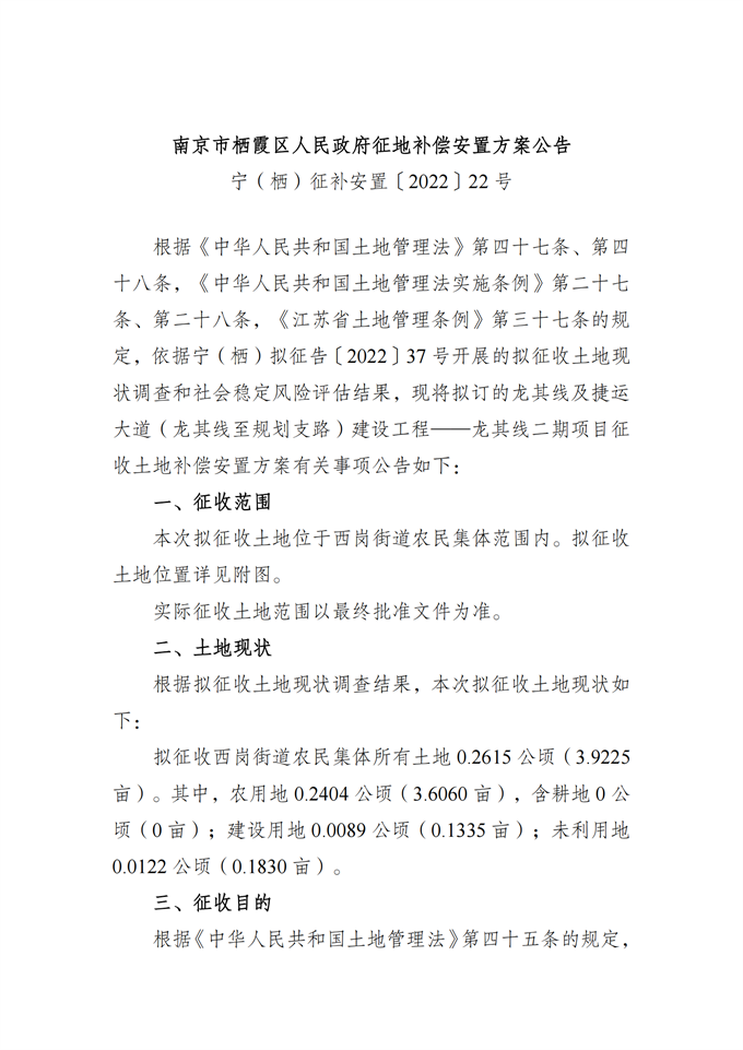 西岗街道-宁(栖)征补安置〔2022〕22号-龙其线及捷运大道(龙其线至规划支路)建设工程——龙其线二期