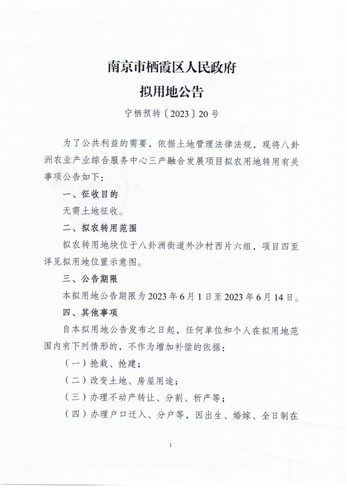 宁栖预转〔2023〕20号-八卦洲农业产业综合服务中心三产融合发展项目