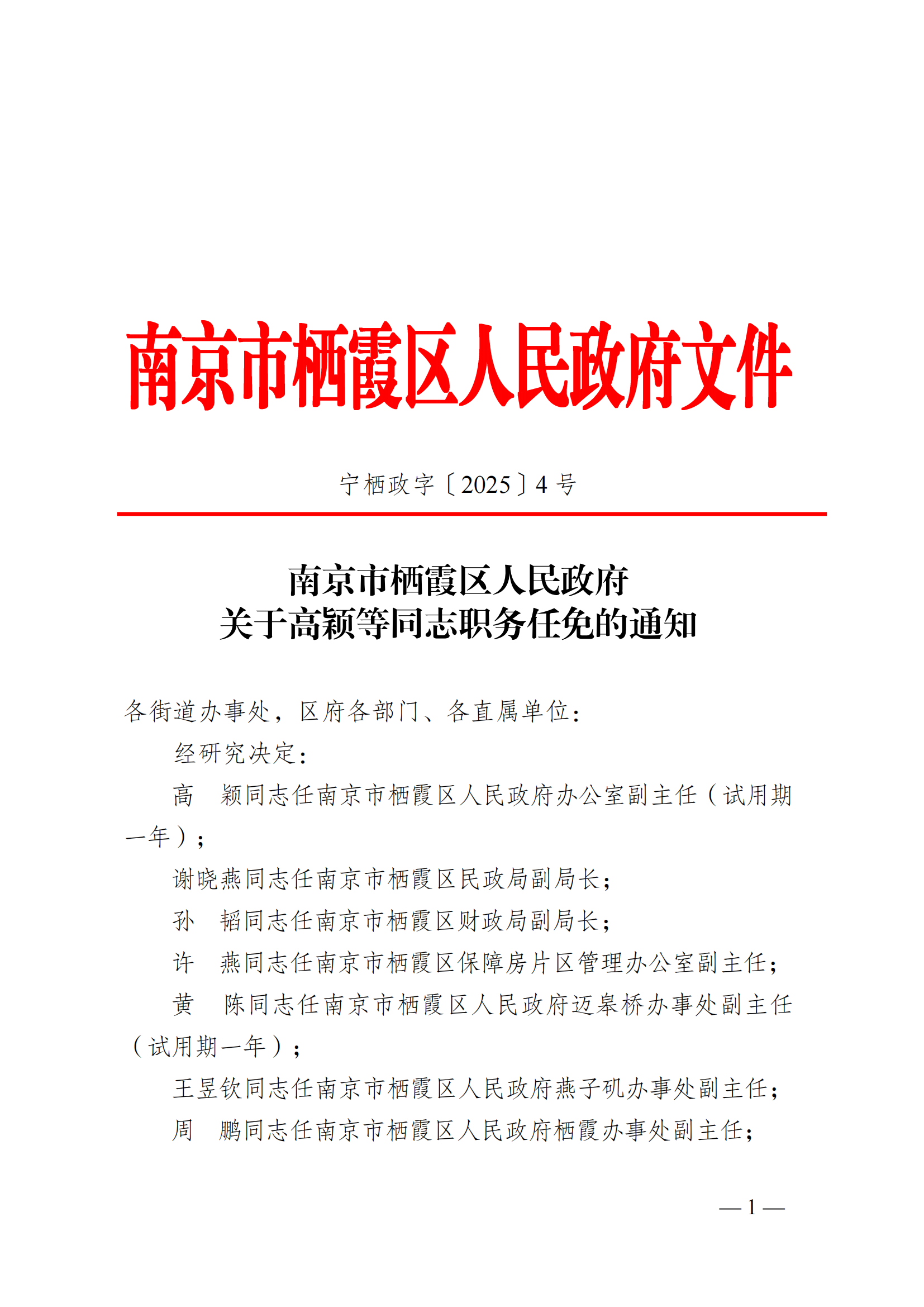 南京市栖霞区人民政府关于高颖等同志职务任免的通知
