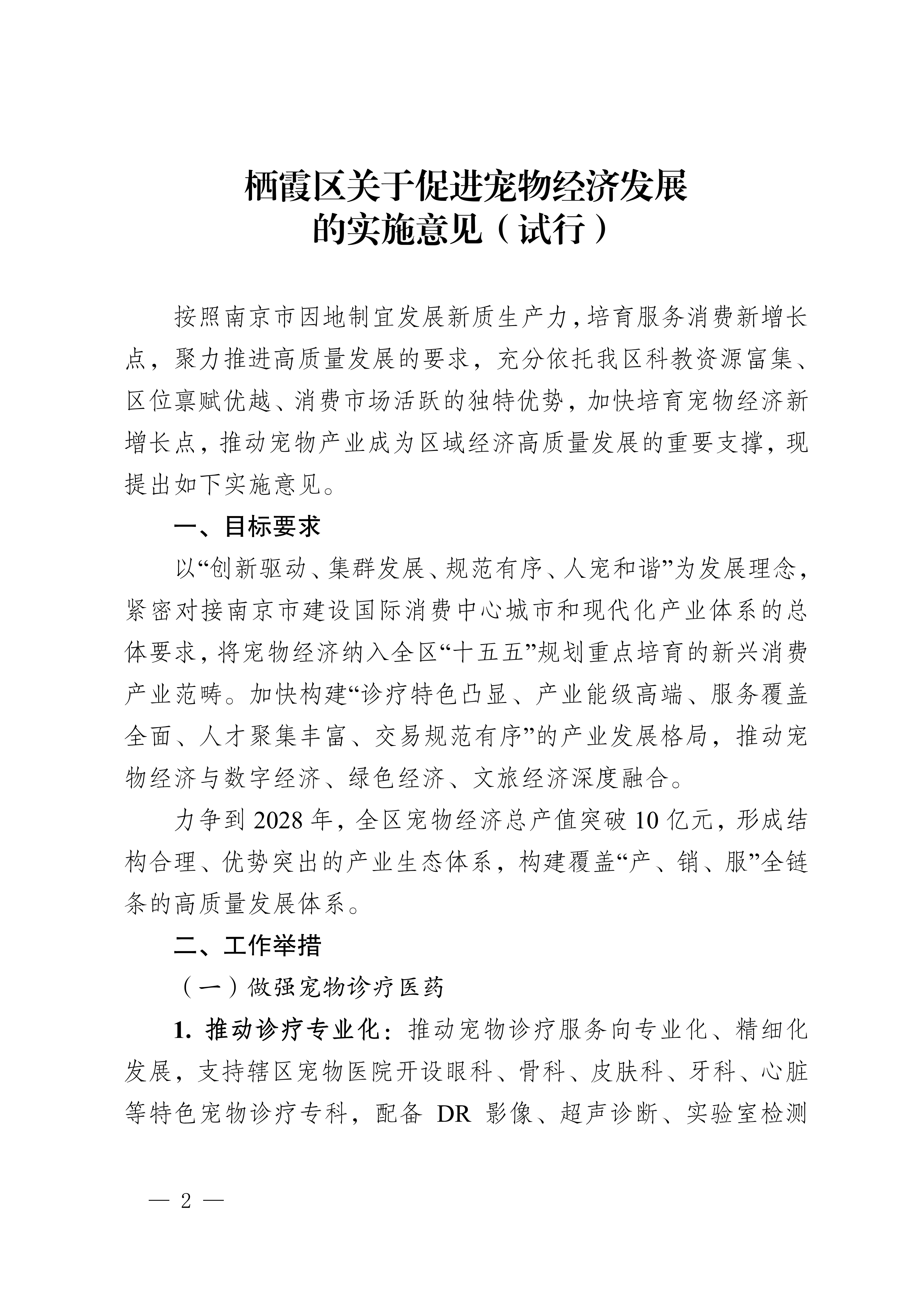 宁栖政办字〔2026〕4号区政府办公室关于印发《栖霞区关于促进宠物经济发展的实施意见(试行)》的通知