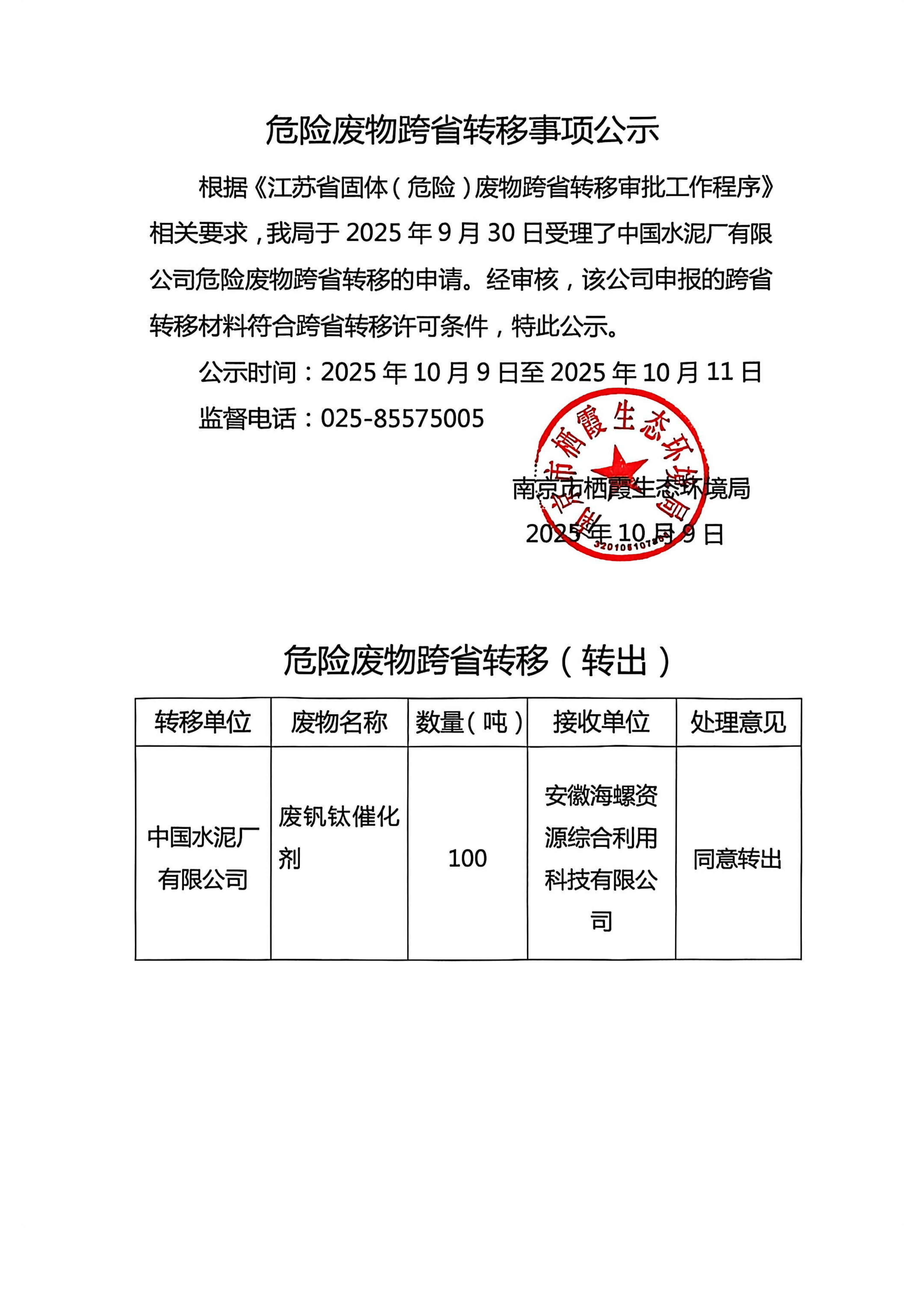 危险废物跨省转移事项公示