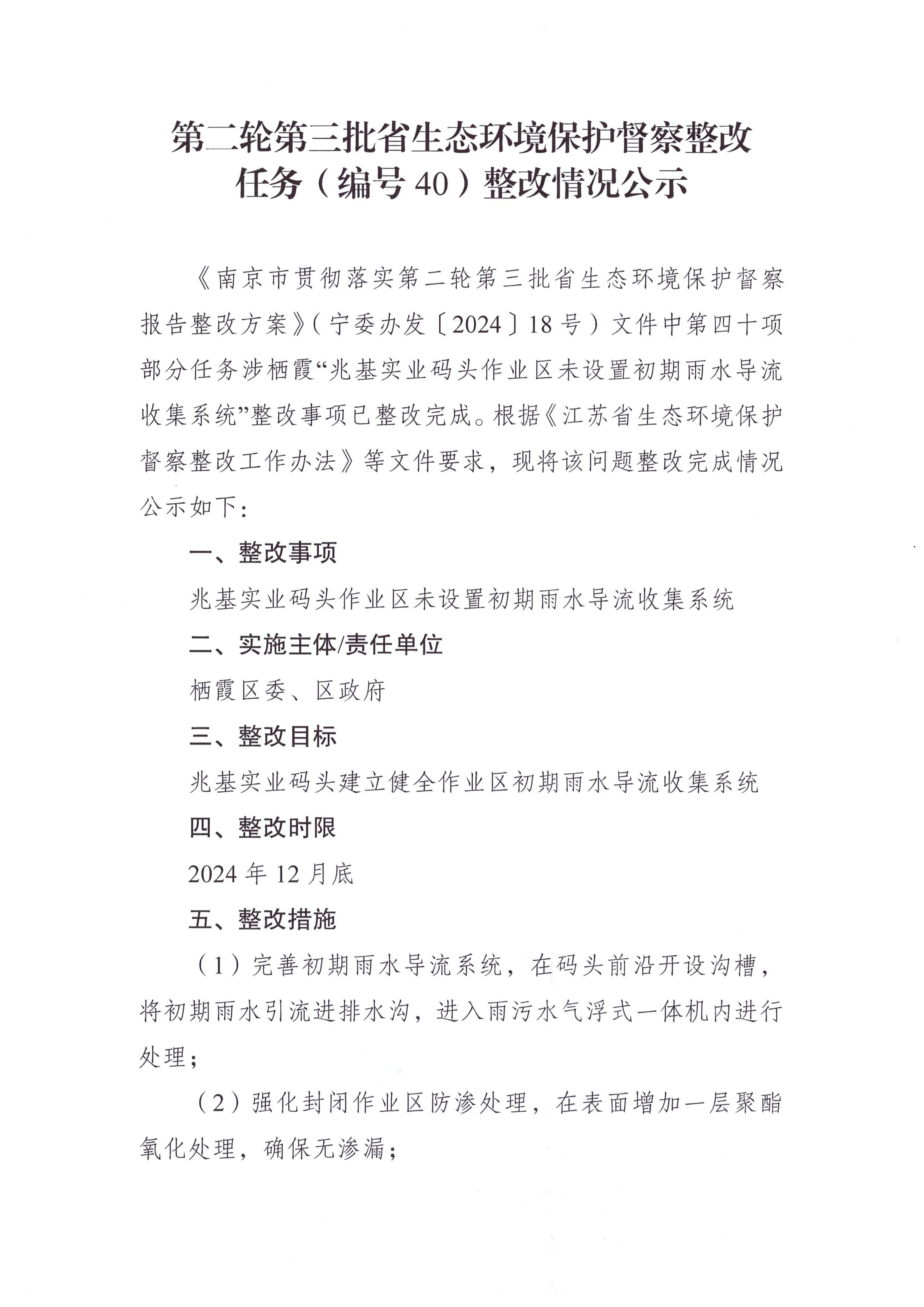 第二轮第三批省生态环境保护督察整改任务(编号40)整改情况公示