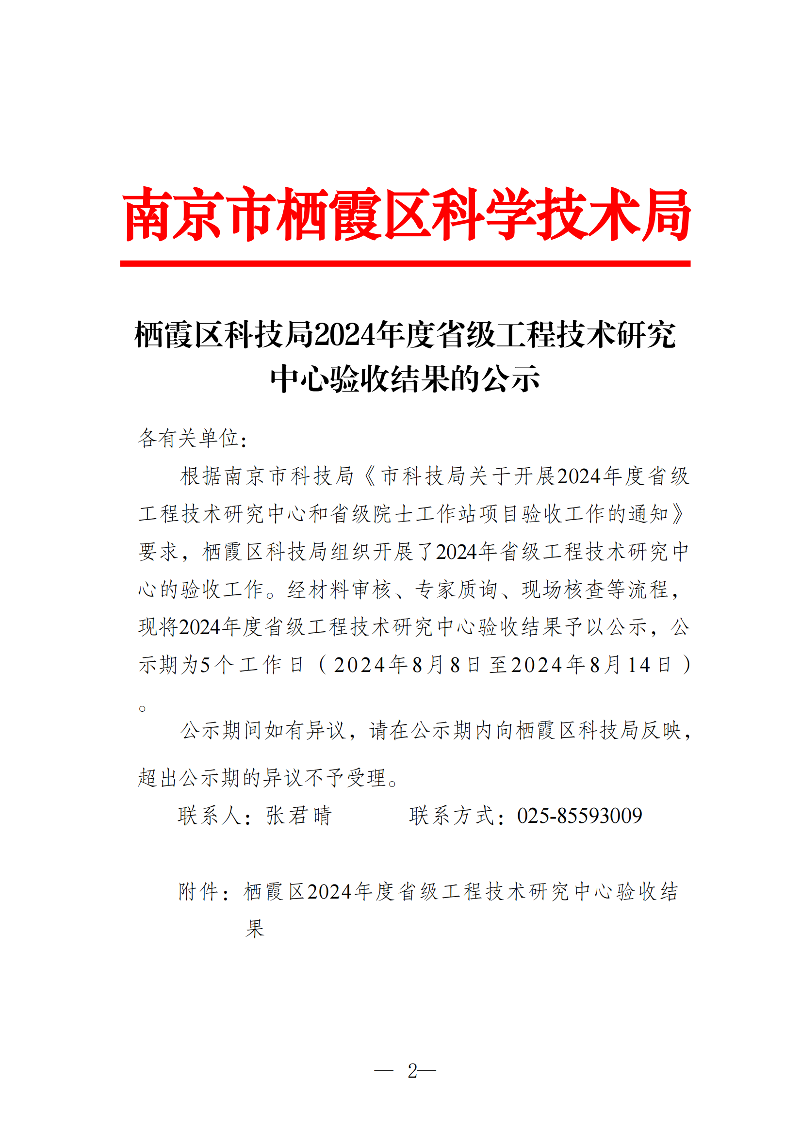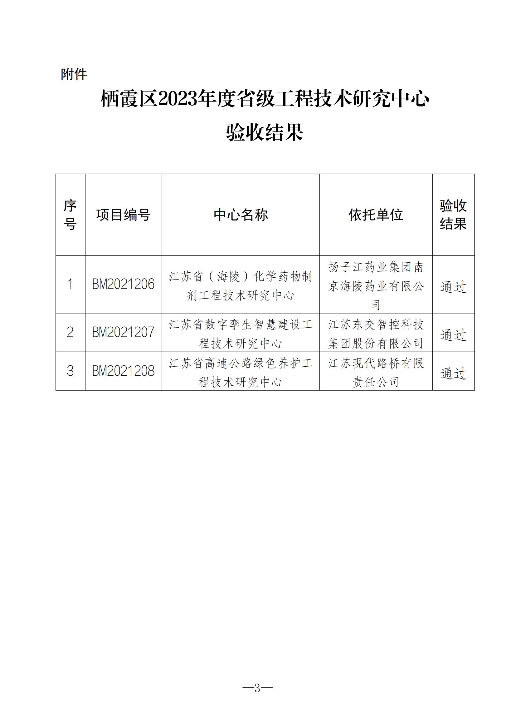 栖霞区科技局2024年度省级工程技术研究中心验收结果公示