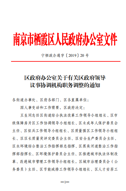 区政府办公室关于有关区政府领导议事协调机构职务调整的通知