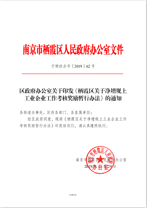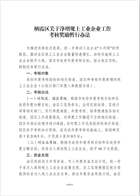 政策解读材料:《栖霞区关于净增规上工业企业工作考核奖励暂行办法》的政策解读