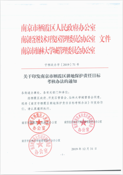 宁栖政办字〔2019〕71号关于印发南京市栖霞区耕地保护责任目标考核办法的通知