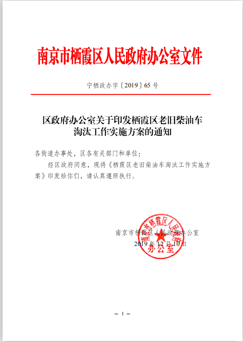 区政府办公室关于印发栖霞区老旧柴油车淘汰工作实施方案的通知