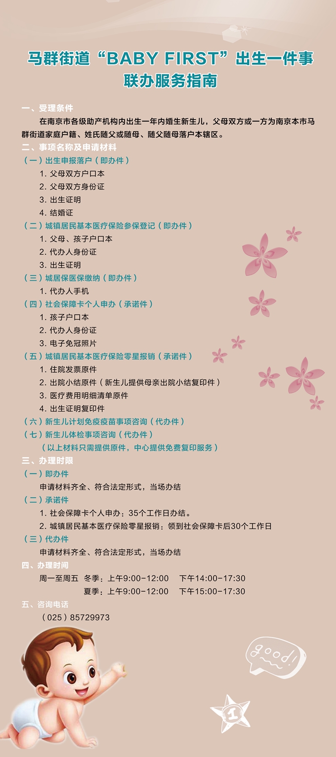 图解:马群街道“BABY FIRST”出生一件事联办服务指南