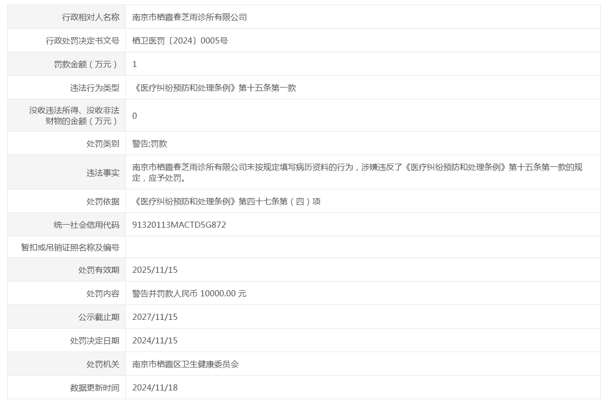 医疗机构不良执业行为公示(栖卫医罚〔2024〕0005号)