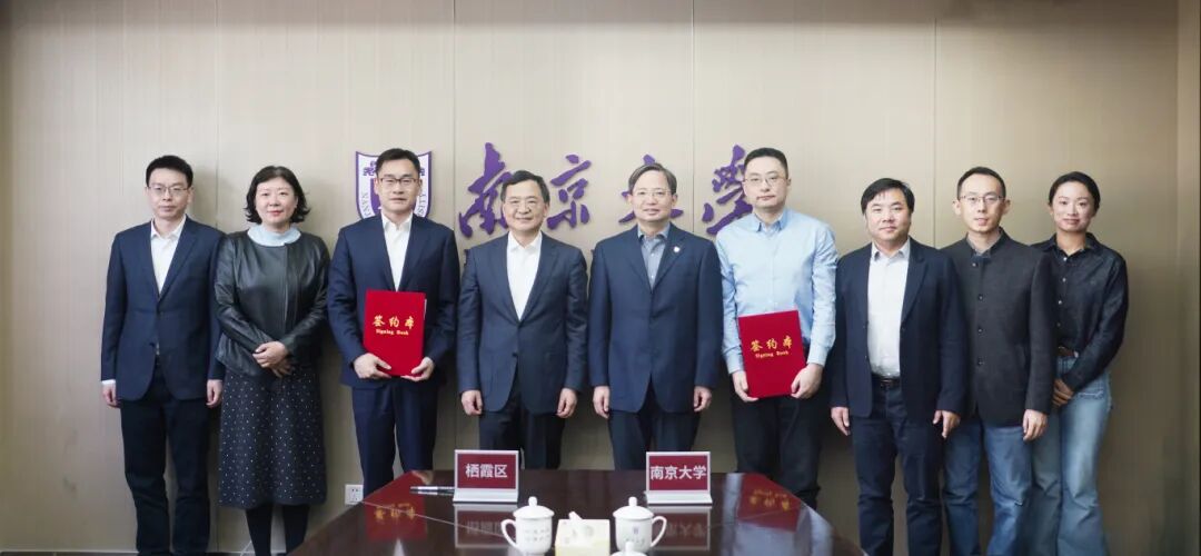 南京大学人工智能学院院长黎铭,副院长俞扬,教授王魏,科研院汤扬;栖霞区委常委、副区长高阳,区工信局、高校合作发展局主要负责同志参加。
