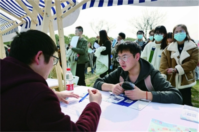 3月4日,由栖霞区人民政府、南京经济技术开发区管理委员会和南京市仙林大学城管理委员会共同举行“霞聚英才 圆梦在即”栖霞2023高校毕业生招聘会。百余家企业提供就业岗位3000余个,吸引近万名求职者参加。