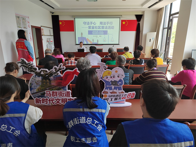 为增强群众法律素养、提高群众维权意识,马群街道在紫金社区开展以“守法于心,用法于行”为主题的法律宣传活动。