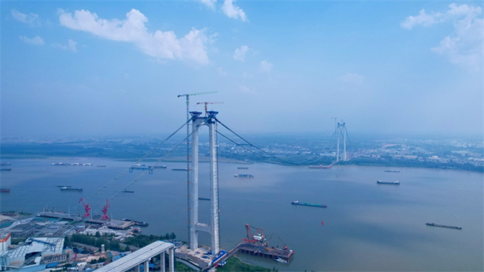 从空中眺望,长江南北宛如架起两条优美的“空中走廊”,连接着南京栖霞区与扬州仪征市。6月12日,由省交建局建设、中交二公局承建的龙潭长江大桥建设取得重要进度——大桥上部猫道施工顺利完成。至此,龙潭长江大桥空中施工通道实现全线贯通,为后续主缆架设奠定了坚实基础。