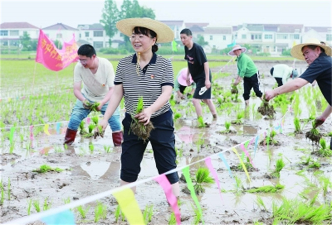 近日,栖霞区龙潭街道南中村开展第三届农民插秧赛。参赛队伍分别为种植户代表、青年党员代表、机关干部代表和村民代表,参赛选手卷起裤管、撸起袖子、走进水田,弯腰、择株、分苗、插秧……连串动作一气呵成,选手们你追我赶,互相较劲,田埂之上村民们为队员们加油呐喊。