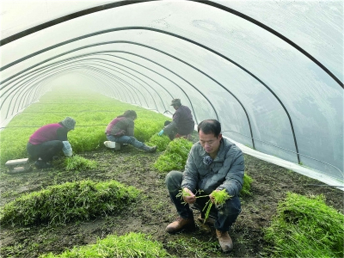 洲磊蔬菜专业合作社的几名工人正在采收芦蒿。