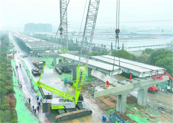 ,中建安装施工人员在仙新路过江通道南接线进行钢板叠合梁架设施工。目前,钢板叠合梁架设已完成
