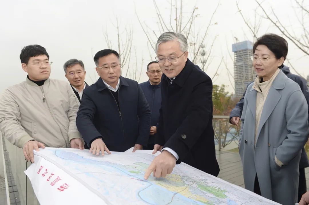 周红波在燕子矶滨江公园参观展厅,详细了解片区综合整治情况,并听取栖霞区产业规划布局情况汇报。