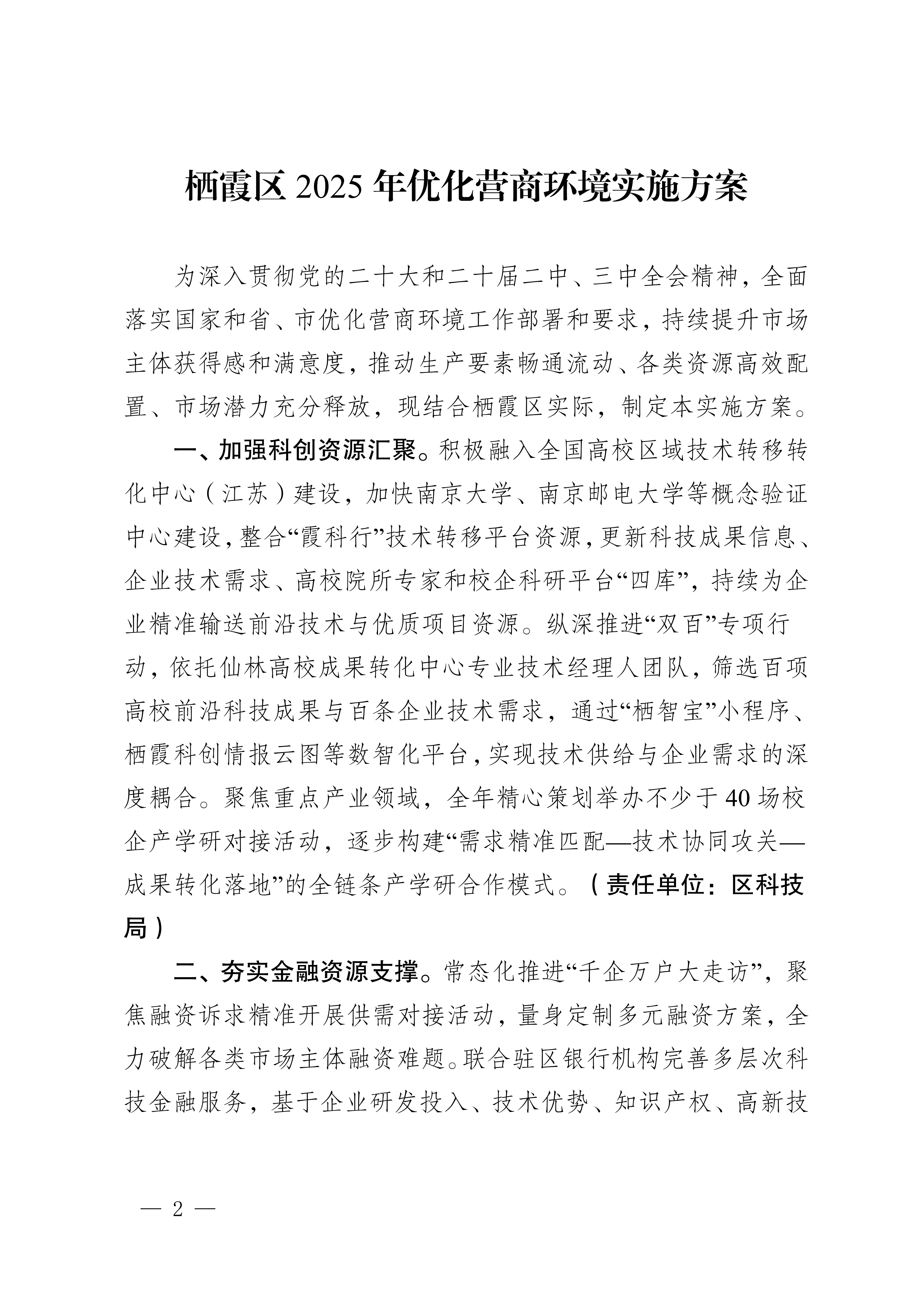 宁栖政办字〔2025〕15号 关于印发栖霞区2025年优化营商环境实施方案的通知