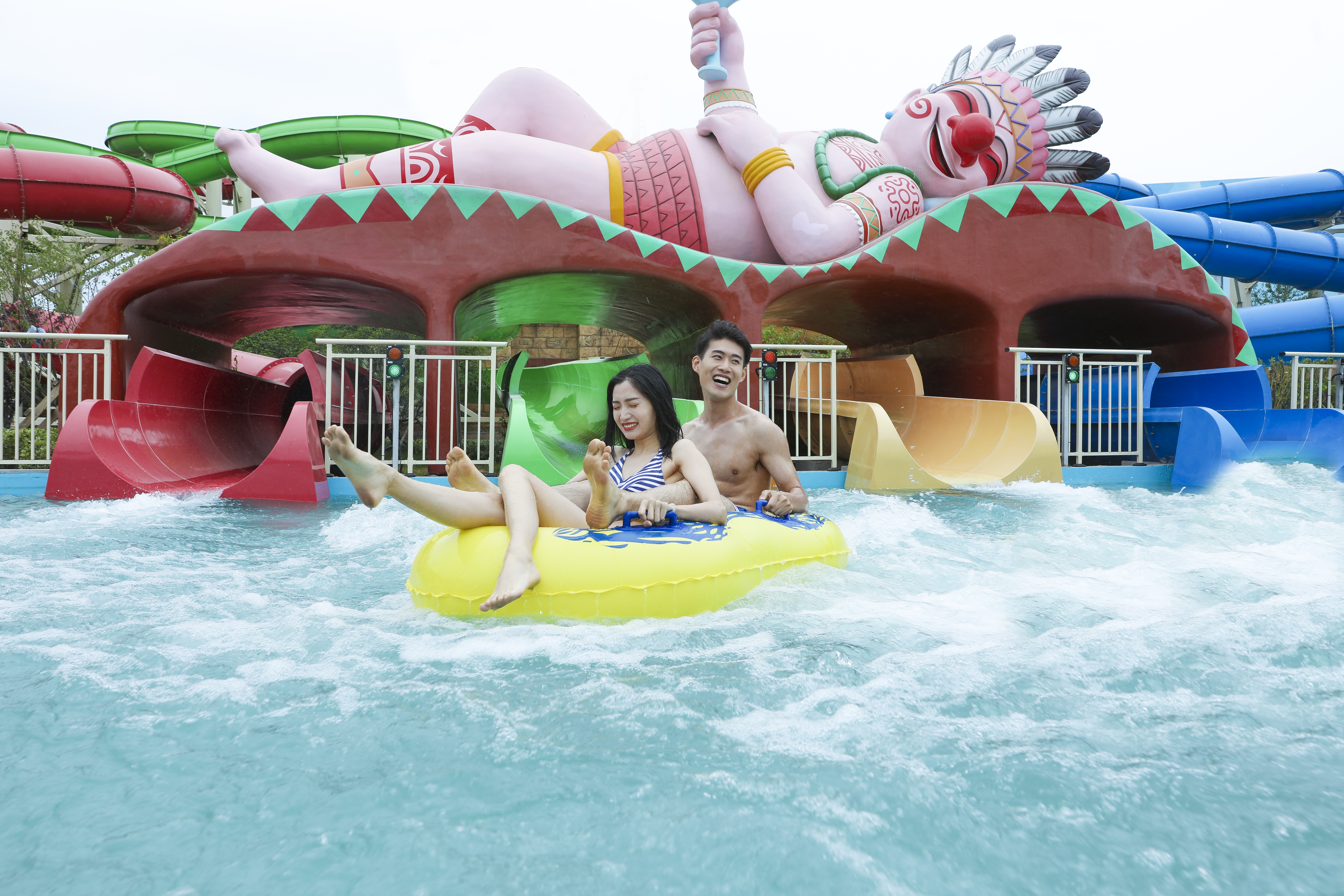 与现代水上游乐完美融合。全园滑道采用温水恒温系统,设有占地1万平米的大型造浪池“加勒比海滩”,引进了“双龙过山车”、水上跳楼机“极速坠落”、自带盛夏BGM的“尖叫大水环”、碟型滑道“碟影重重”、色彩斑斓的“彩虹赛道”等独具特色的大型戏水项目。除此之外,专为儿童打造的童话水世界,充满童真趣味。除了众多娱水项目,南京玛雅海滩水公园还推出了一系列充满异域风情的精彩演艺。