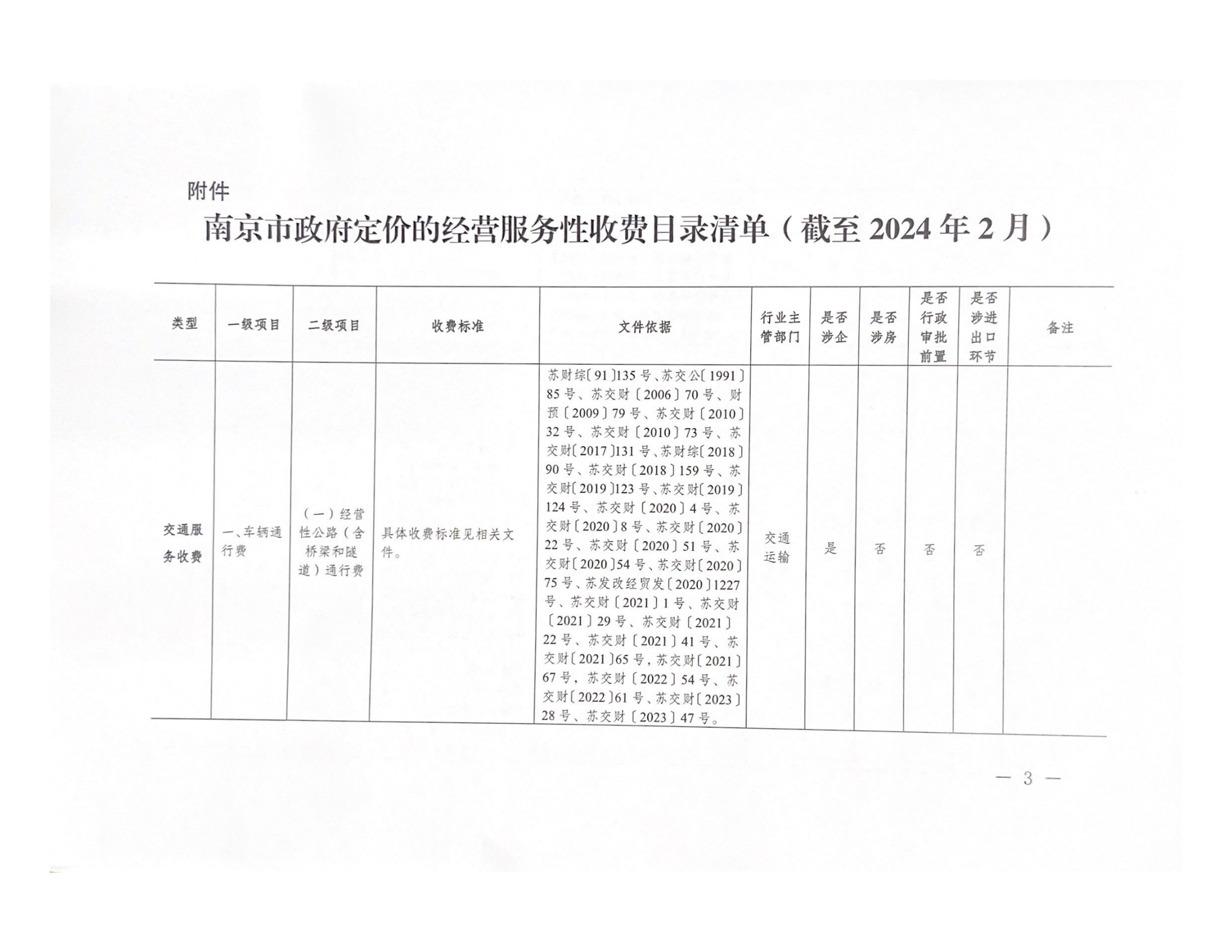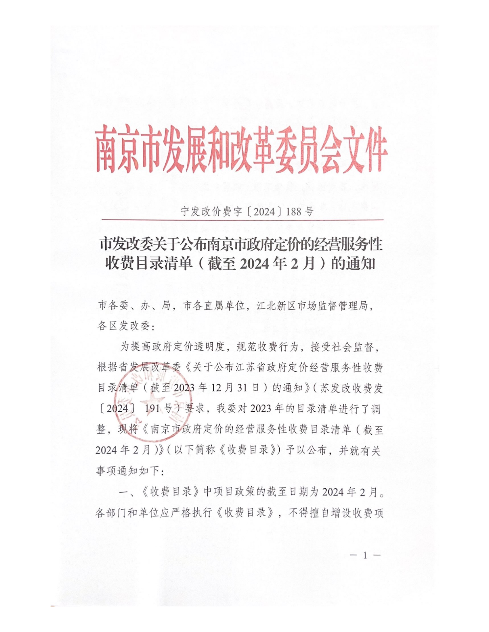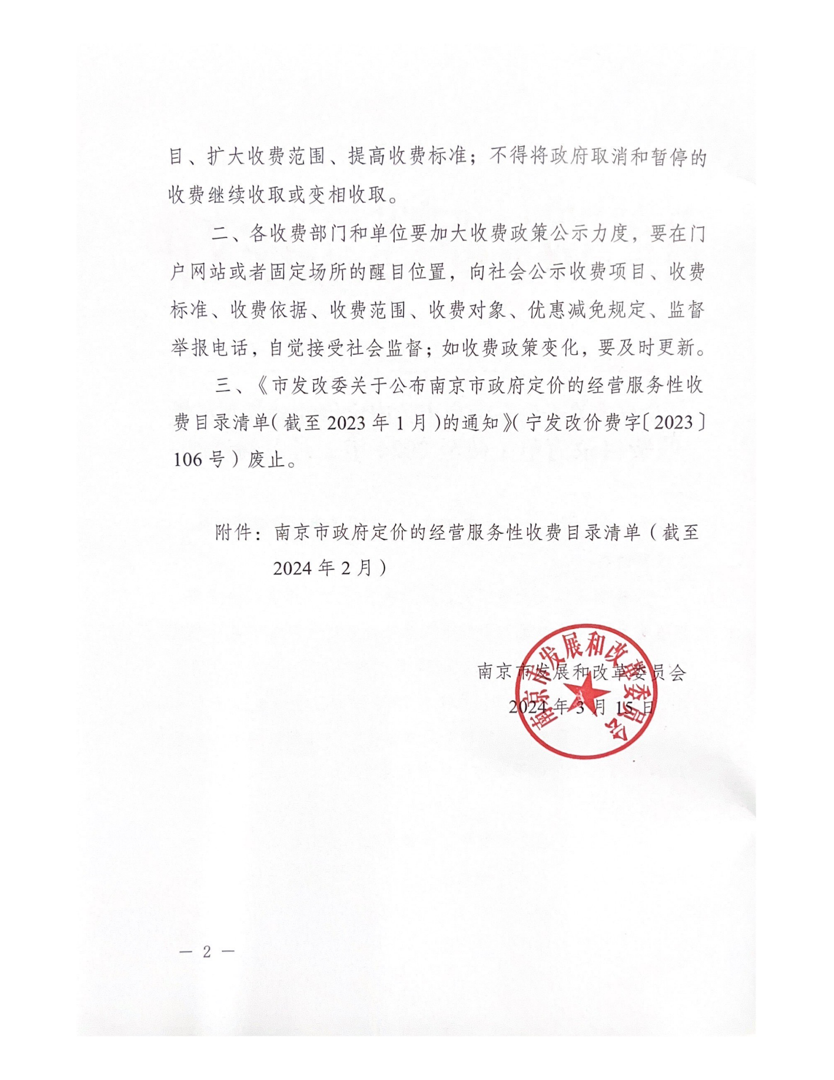 市发改委关于公布南京市政府定价的经营服务性收费目录清单(截至2024年2月)的通知