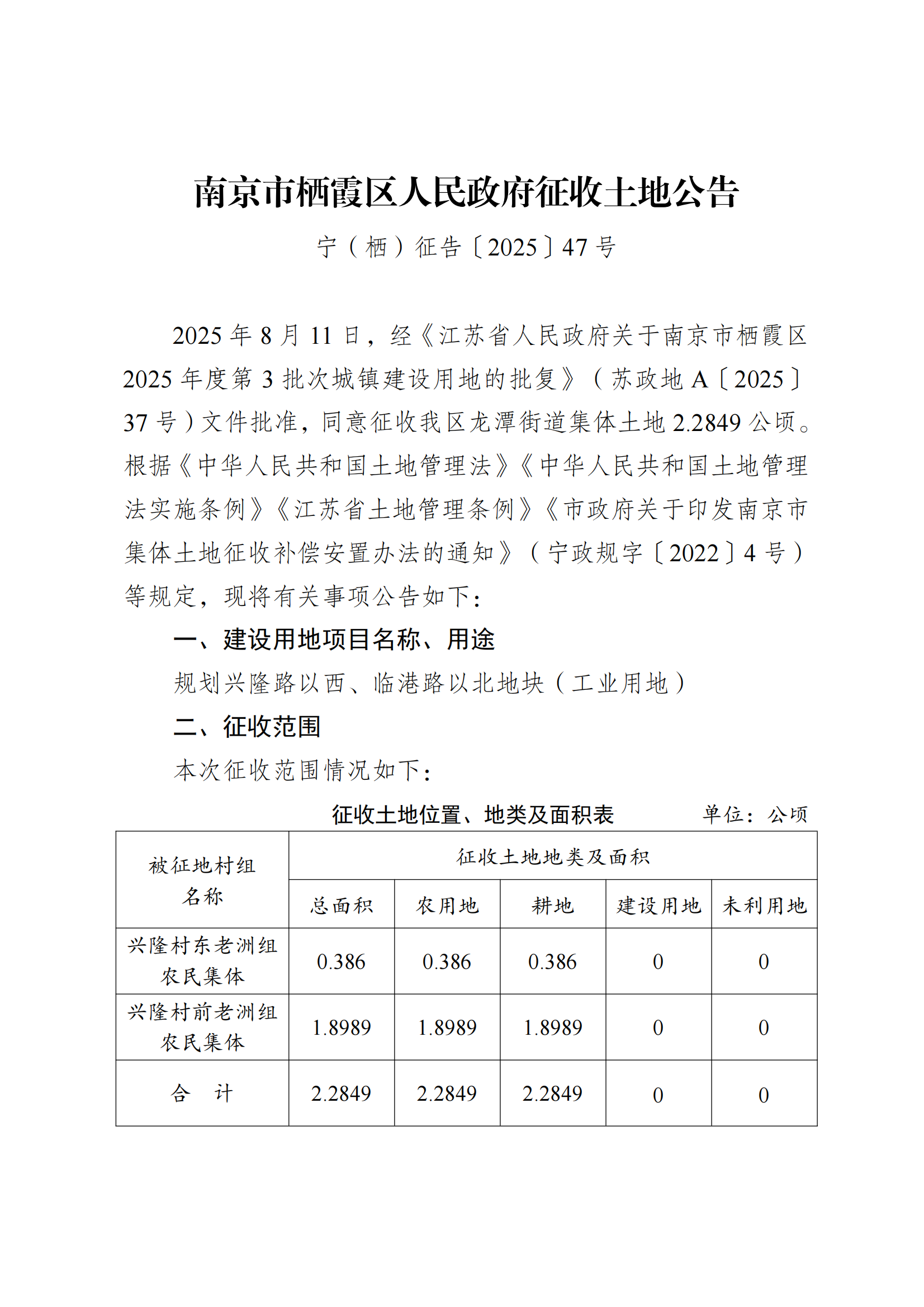 征收土地公告-宁(栖)征告〔2025〕47号-规划兴隆路以西、临港路以北地块