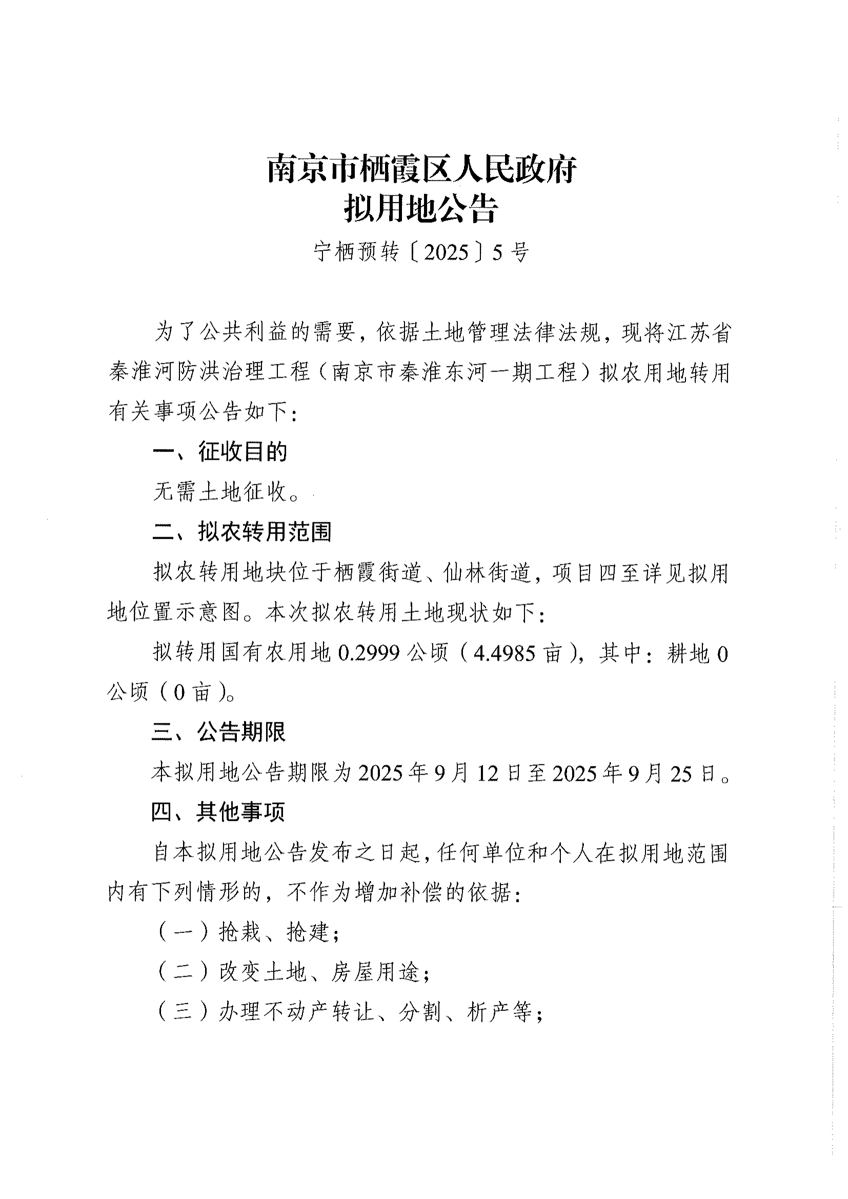 宁栖预转〔2025〕5号-江苏省秦淮河防洪治理工程(南京市秦淮东河一期工程)