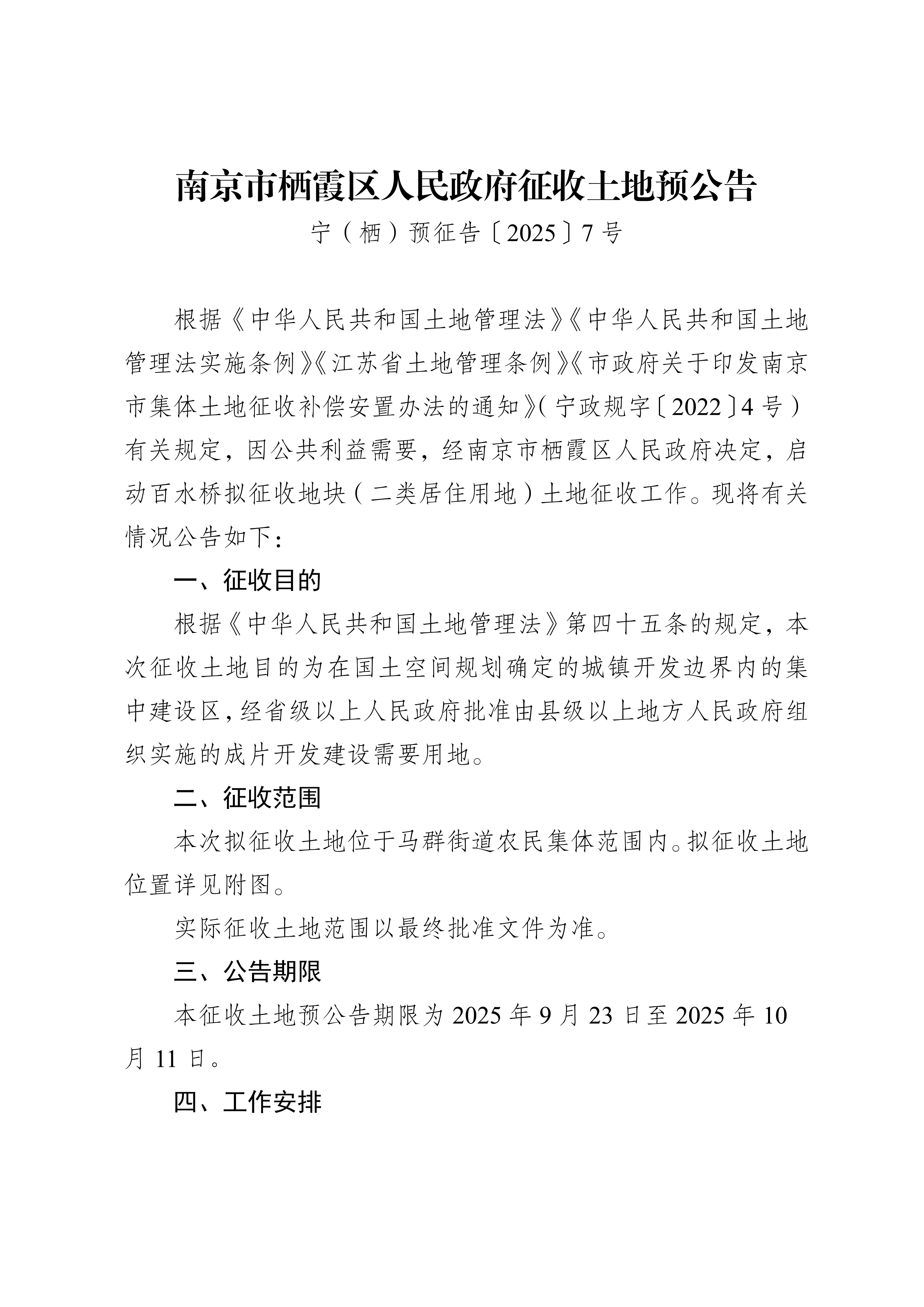宁(栖)预征告〔2025〕7号-百水桥拟征收地块(二类居住用地)