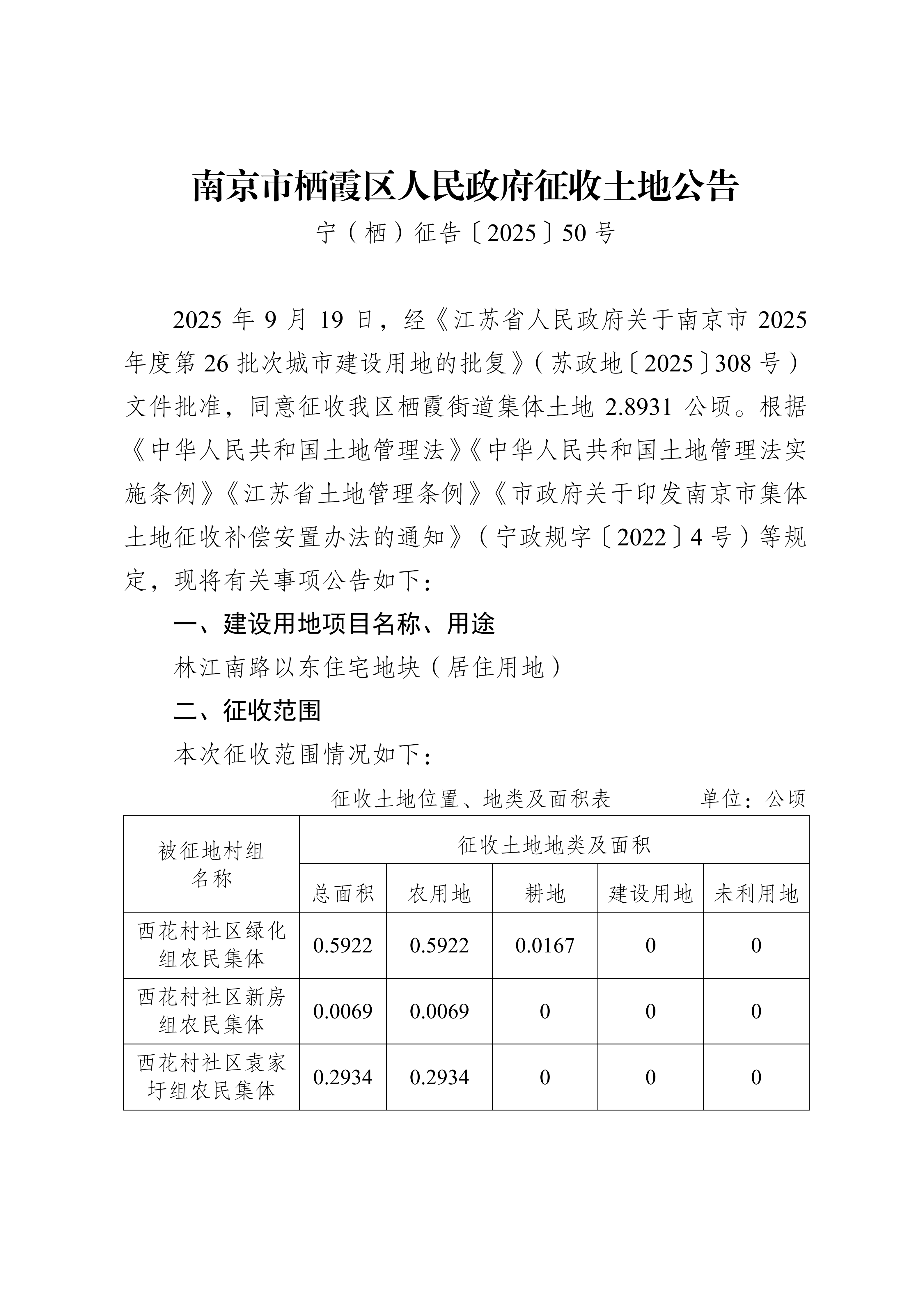 征收土地公告-宁(栖)征告〔2025〕50号-林江南路以东住宅地块