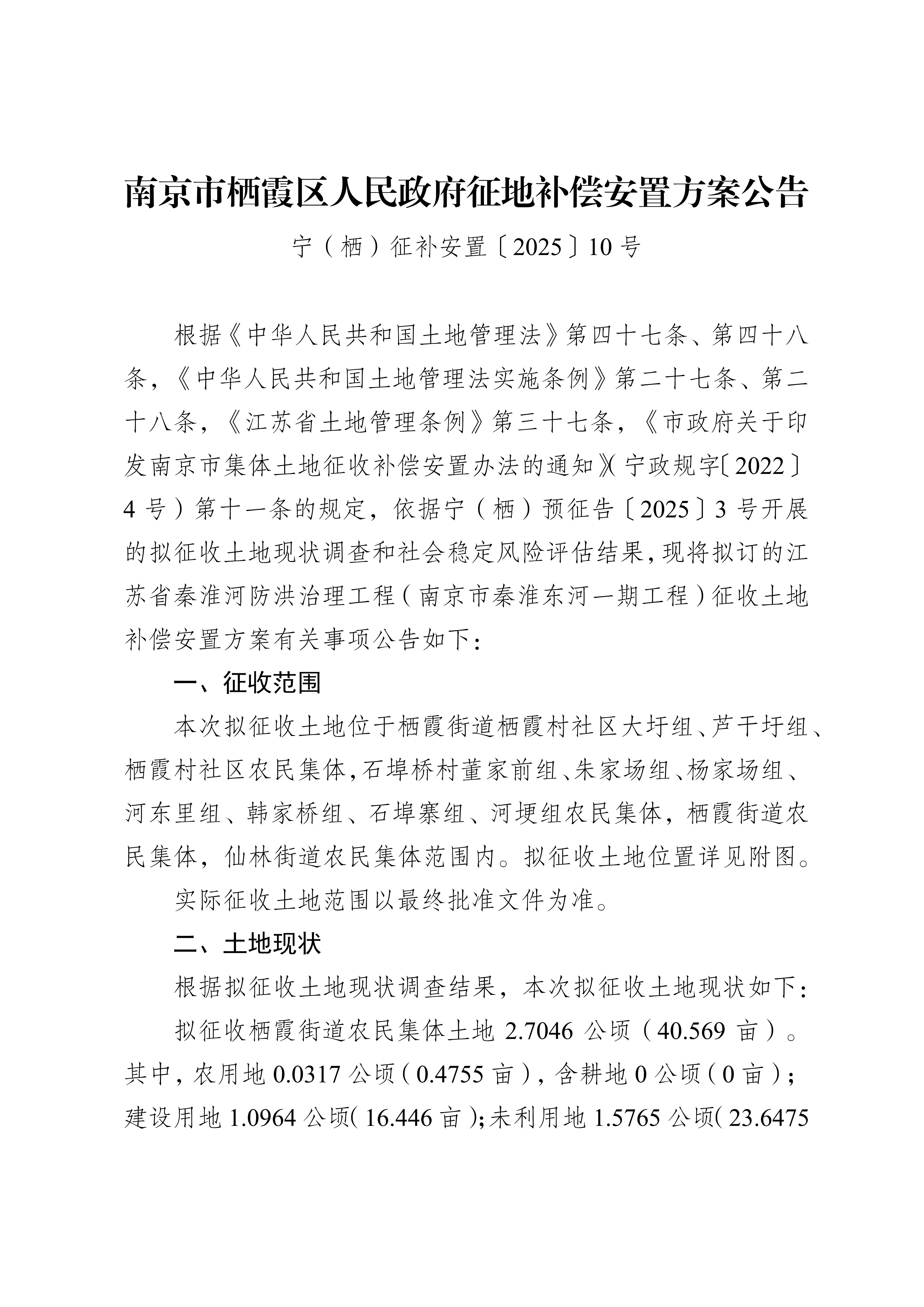 宁(栖)征补安置〔2025〕10号-江苏省秦淮河防洪治理工程(南京市秦淮东河一期工程)