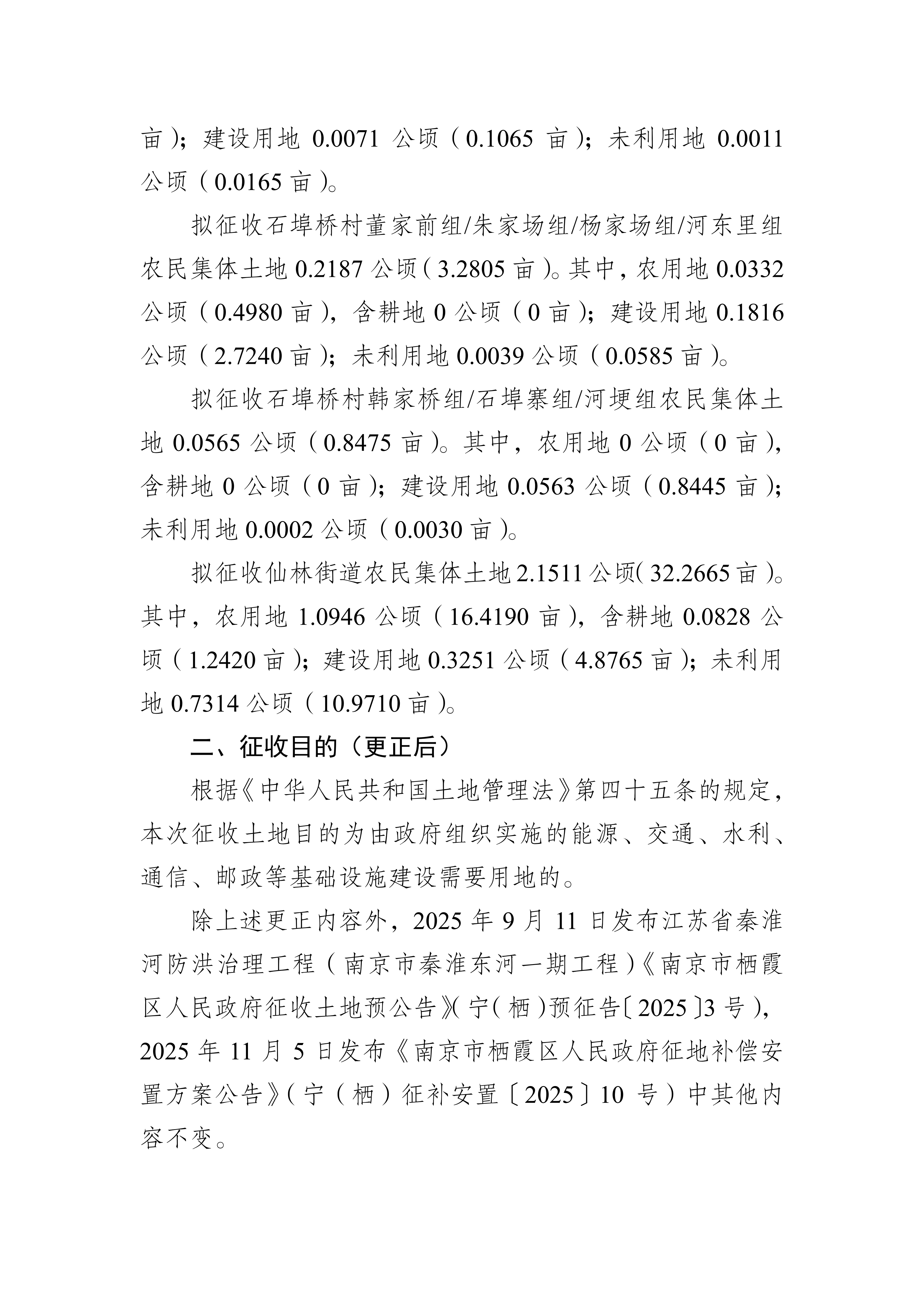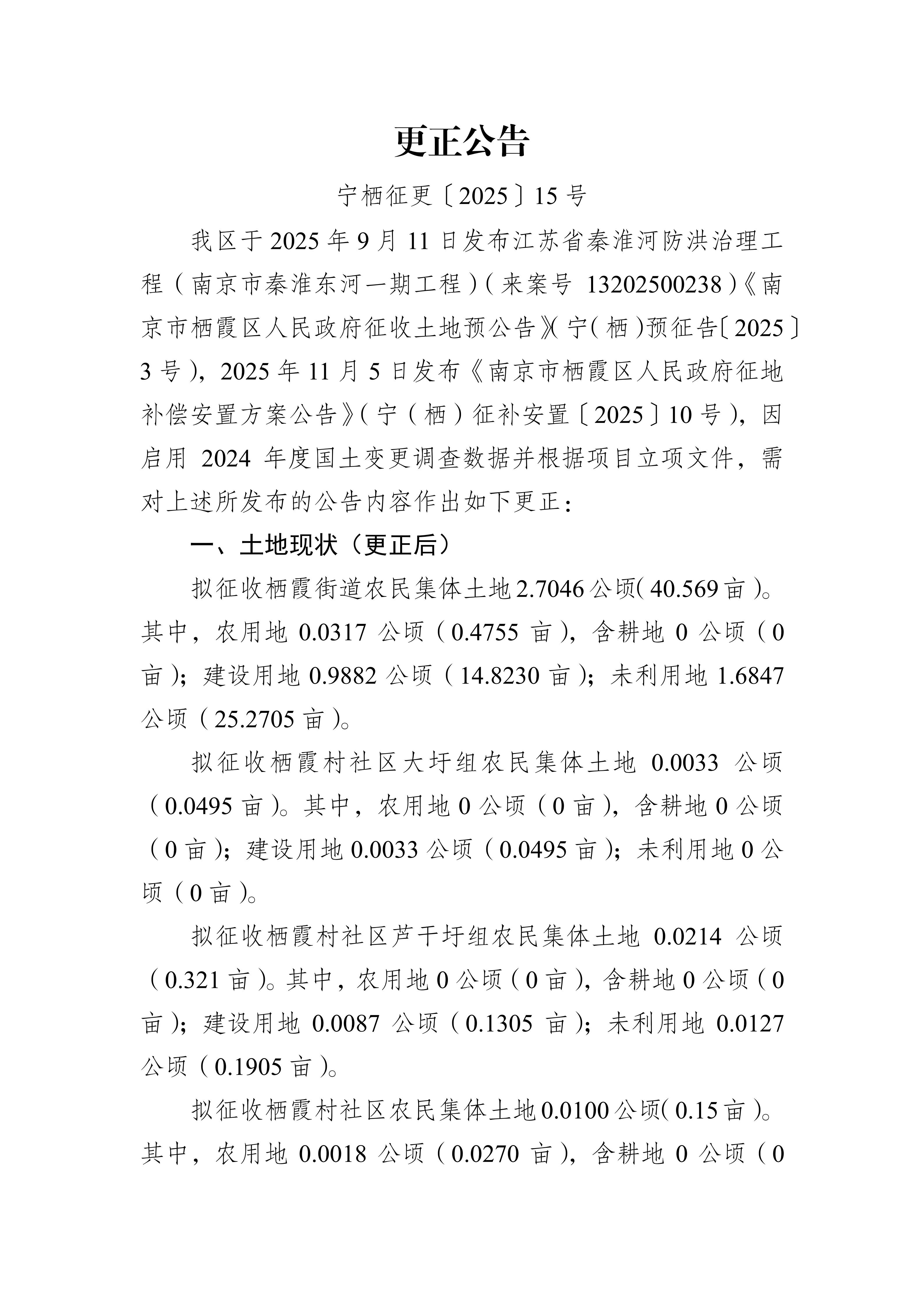 更正公告-宁栖征更〔2025〕15号-江苏省秦淮河防洪治理工程(南京市秦淮东河一期工程)
