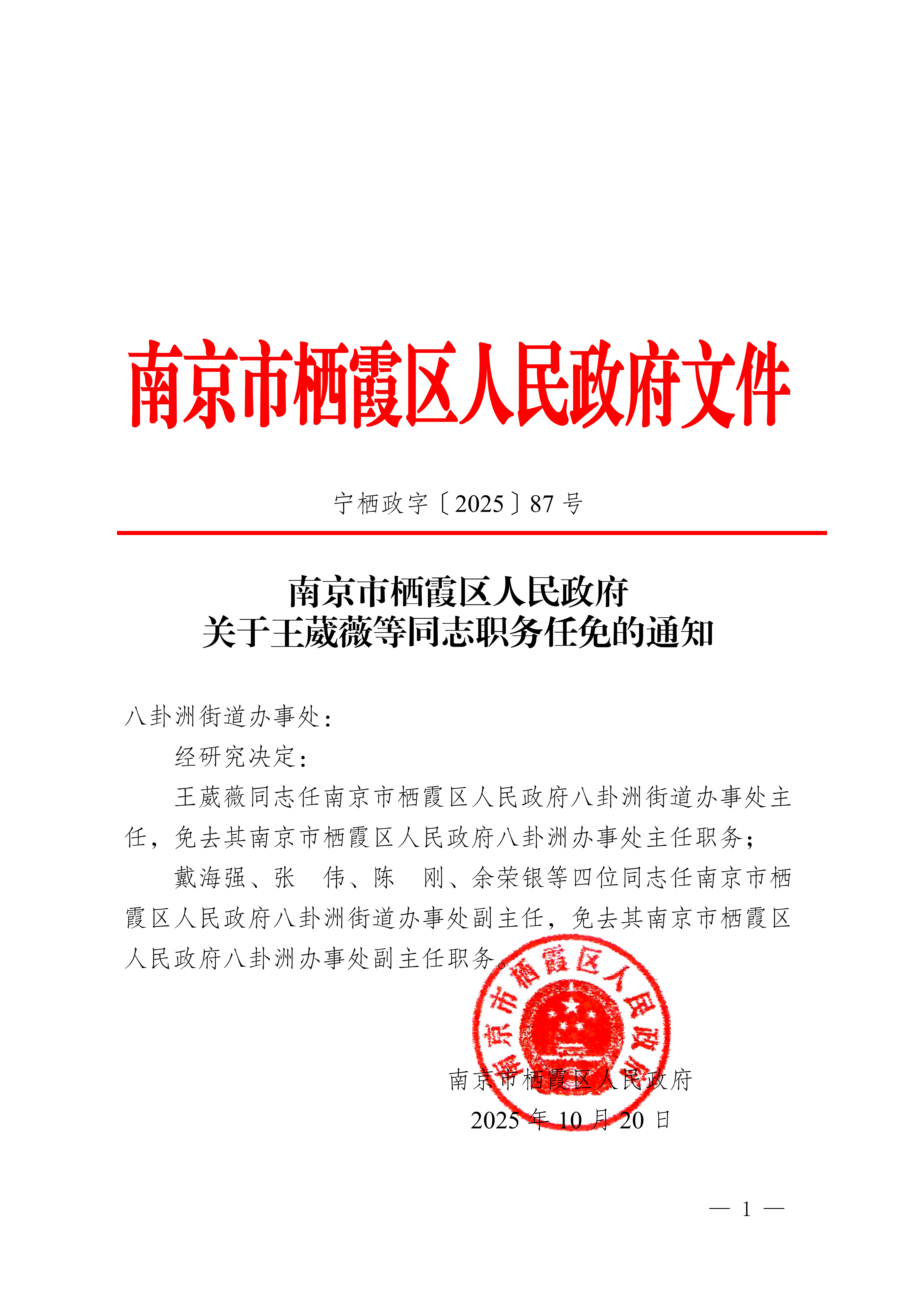 南京市栖霞区人民政府关于王葳薇等同志职务任免的通知
