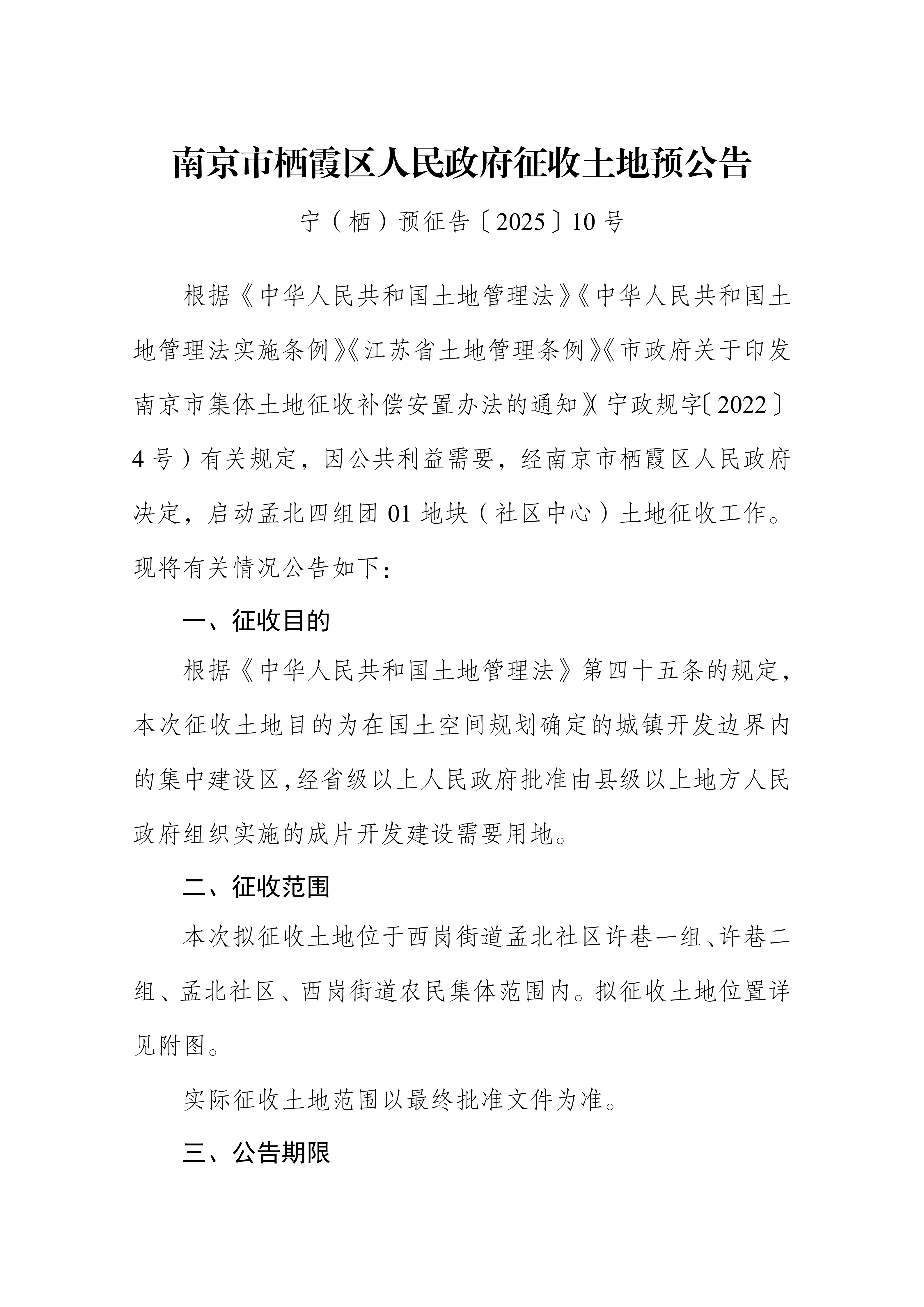 宁(栖)预征告〔2025〕10号-孟北四组团01地块(社区中心)