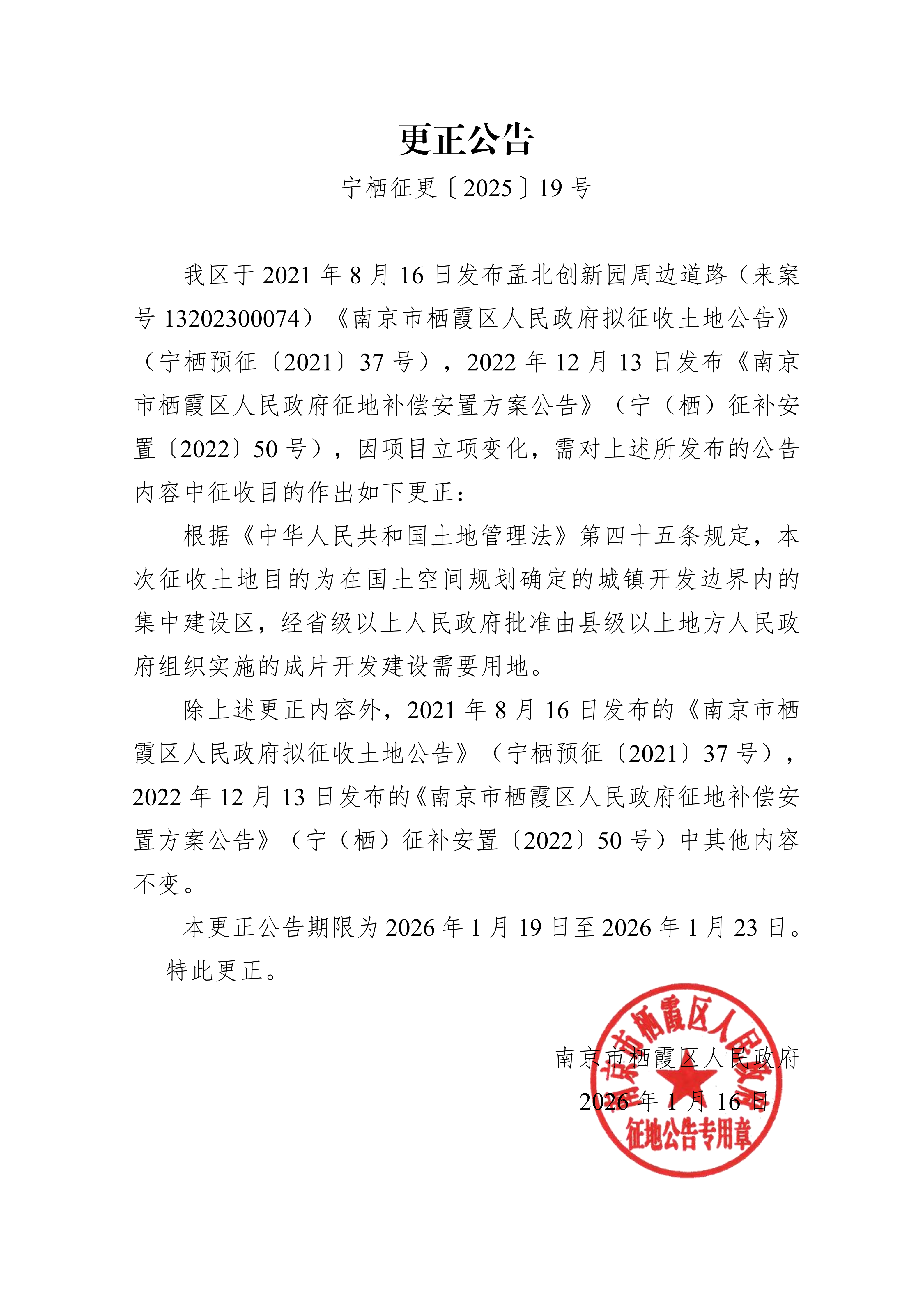 更正公告-宁栖征更〔2025〕19号-孟北创新园周边道路