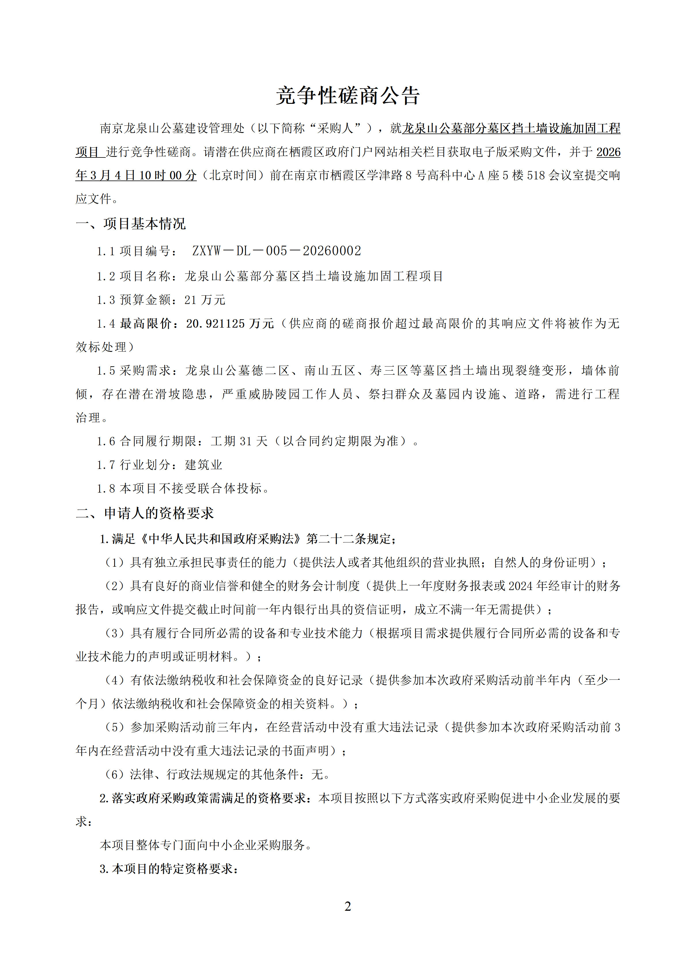2.竞争性磋商-龙泉山公墓部分墓区挡土墙设施加固工程项目.docx