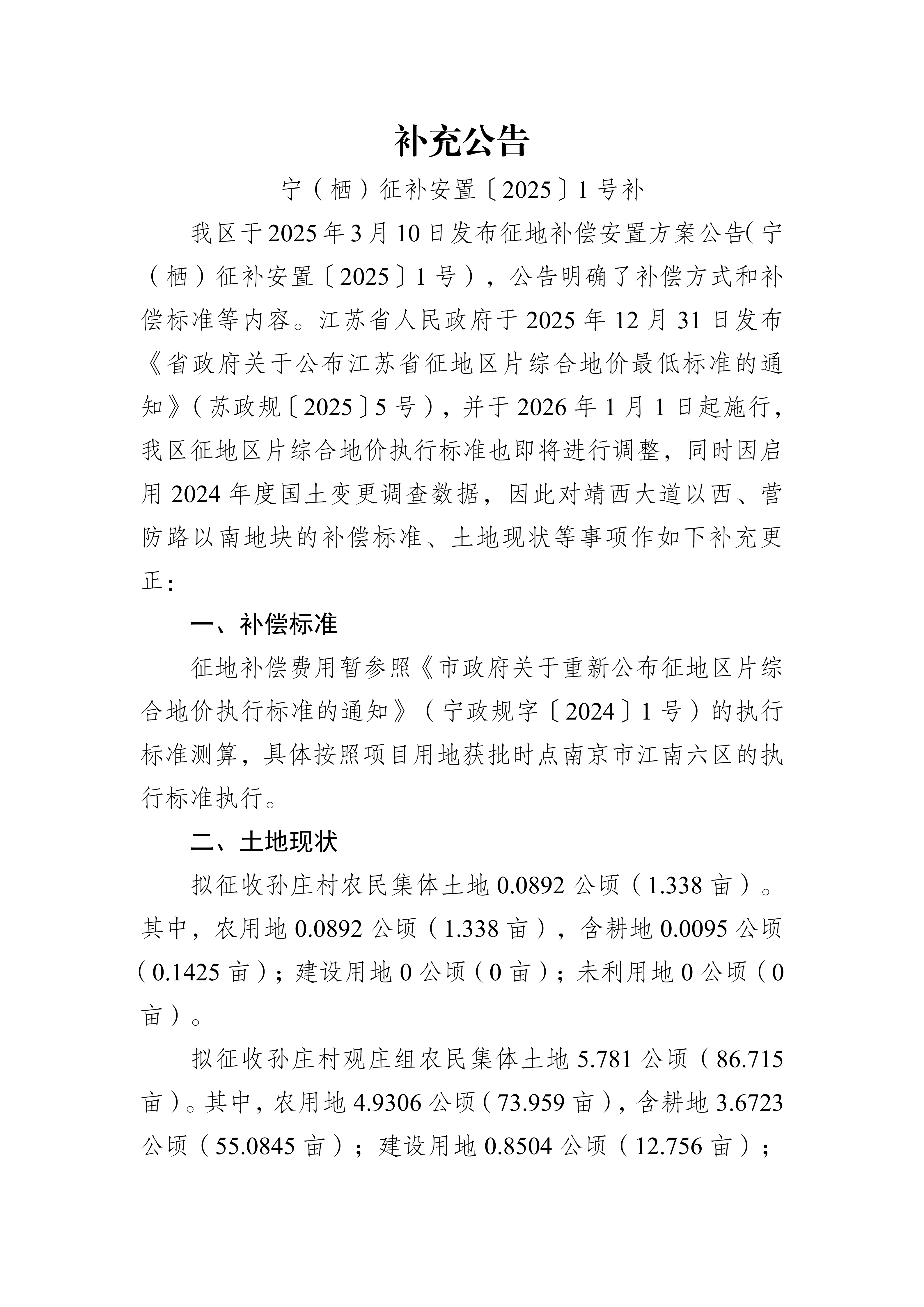 宁(栖)征补安置〔2025〕1号补-靖西大道以西、营防路以南地块-补充公告