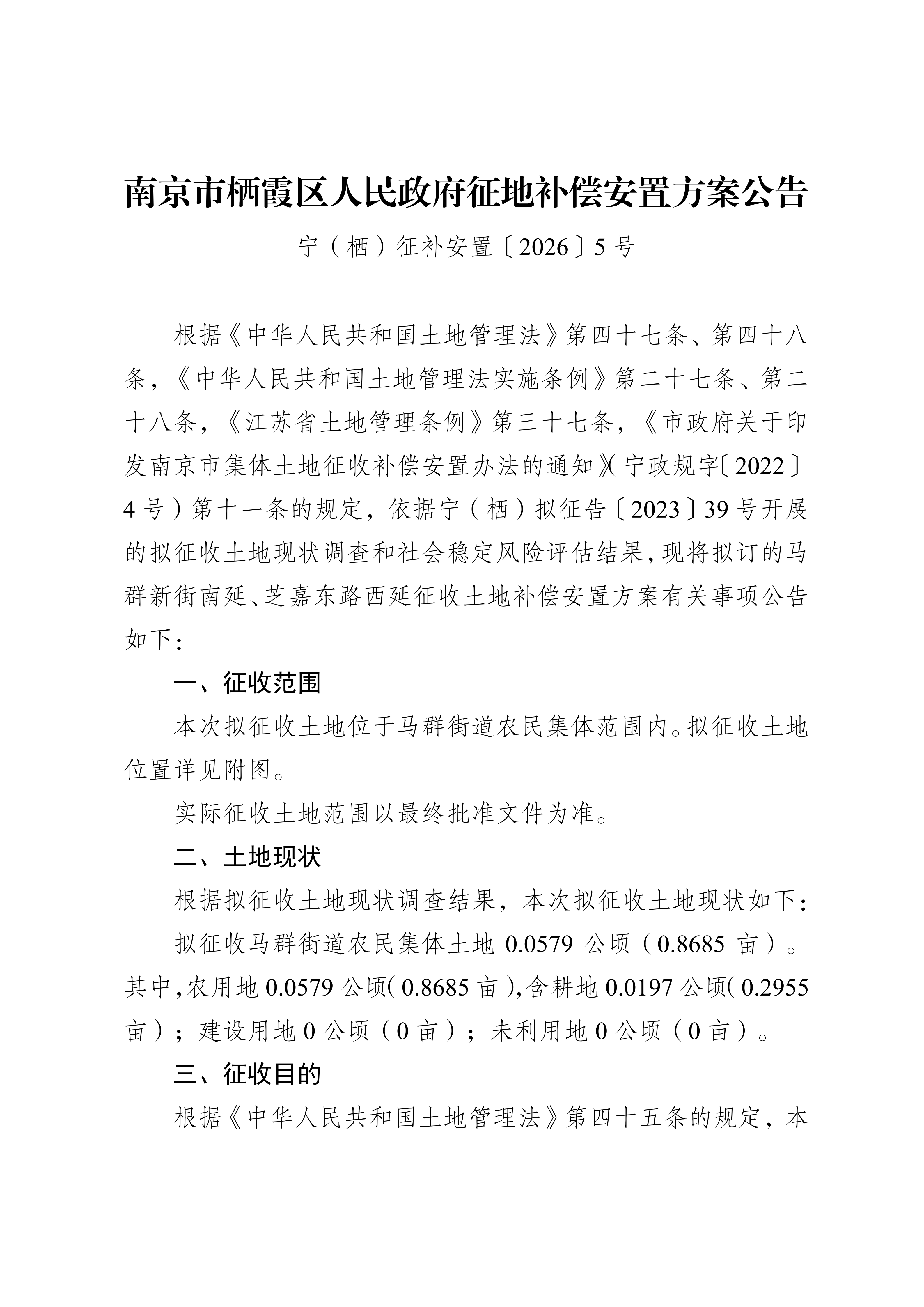 宁(栖)征补安置〔2026〕5号-13202300175-马群新街南延、芝嘉东路西延