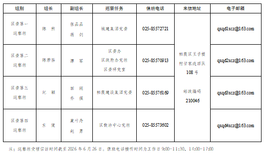 巡察期间,设立专门值班电话、电子信箱和开通“码上巡”线上平台,主要受理涉及被巡察党组织领导班子及其成员、下一级主要负责人和相关重点岗位干部(含已离退休、已调离)的问题反映。其他不属于巡察受理范围的信访问题,将按规定转交有关部门处理。巡察组受理信访时间截至2026年6月26日。
