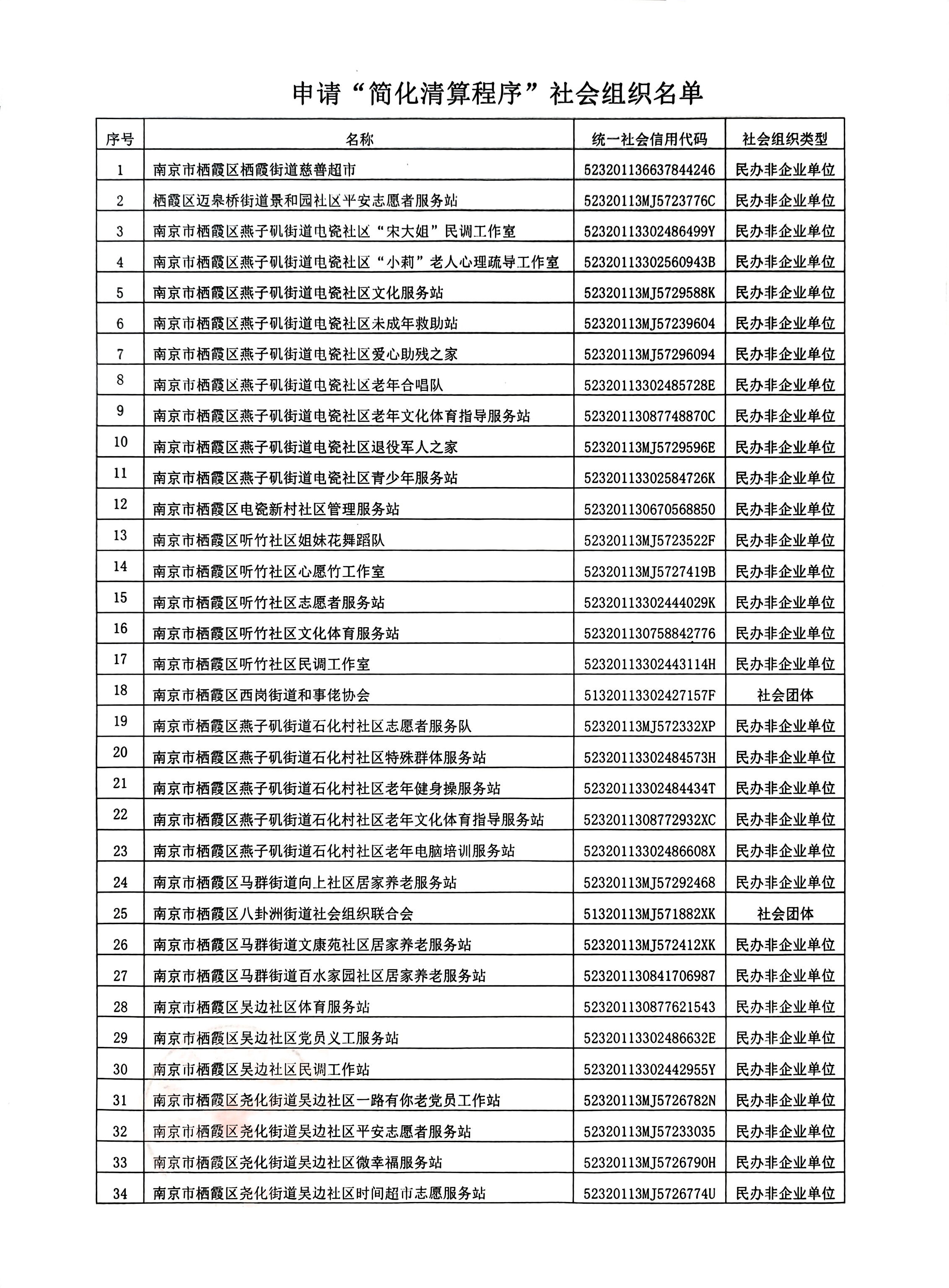 南京市栖霞区栖霞街道慈善超市等55家社会组织注销“简化清算程序”公示