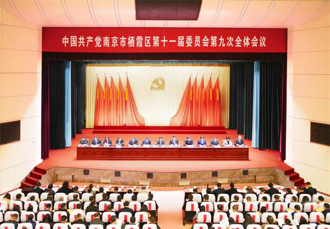 中国共产党南京市栖霞区第十一届委员会第九次全体会议12月28日举行。全会以习近平新时代中国特色社会主义思想为指导,全面贯彻党的二十大和二十届二中全会精神,深入落实习近平总书记对江苏工作重要讲话精神,按照中央经济工作会议、省委十四届五次全会和省委经济工作会议,以及市委十五届七次全会部署要求,总结工作、分析形势,部署明年任务,进一步动员全区上下知重负重踏实干、担责尽责挑大梁,努力创造“走在前、做示范”的过硬业绩,奋力谱写“强富美高”新栖霞现代化建设新篇章。