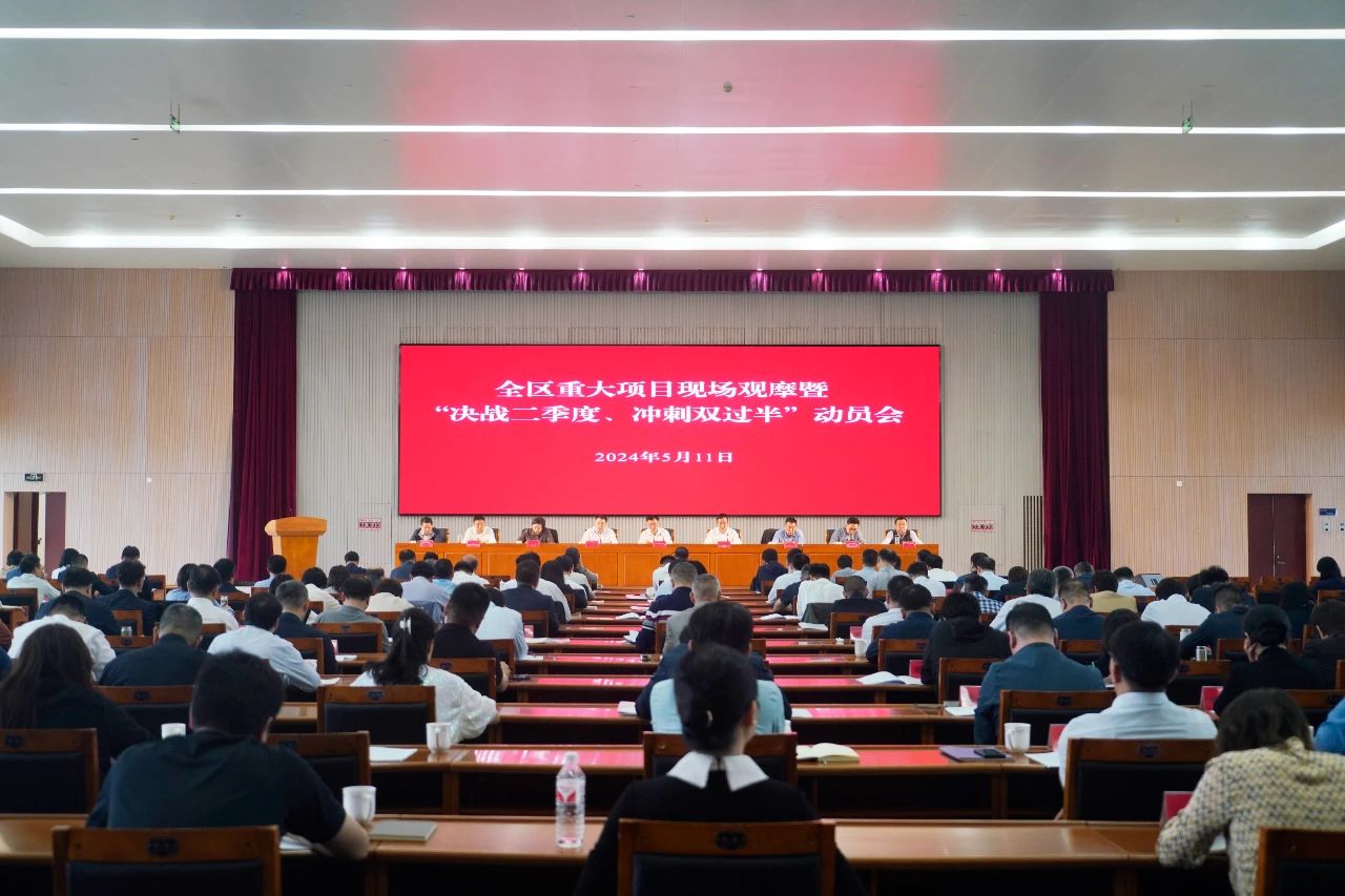5月11日,全区重大项目现场观摩暨“决战二季度、冲刺双过半”动员会召开,深入学习贯彻习近平总书记重要讲话重要指示精神,全面落实党中央决策部署和省、市委工作要求,传达学习市委书记韩立明“推动新质生产力加快发展工作”专题调研座谈会精神,紧扣“五拼五比晒五榜”竞赛活动,动员全区上下以拼的状态、比的劲头、实的作风,决战二季度,冲刺“双过半”,为完成全年各项目标任务打下坚实基础。