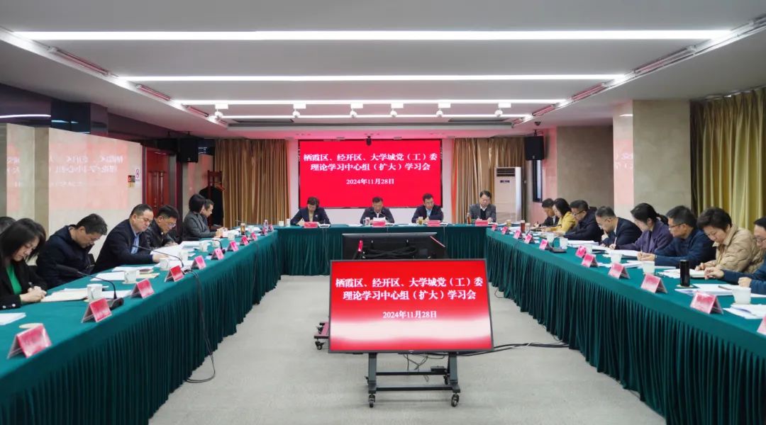 11月28日,栖霞区、经开区、大学城党(工)委理论学习中心组召开学习会,围绕学习贯彻习近平总书记关于整治形式主义为基层减负重要指示精神,落实中央和省市有关规定要求,开展集中交流研讨。栖霞区委书记、南京经济技术开发区党工委书记、仙林大学城党工委书记戴华杰主持并讲话。