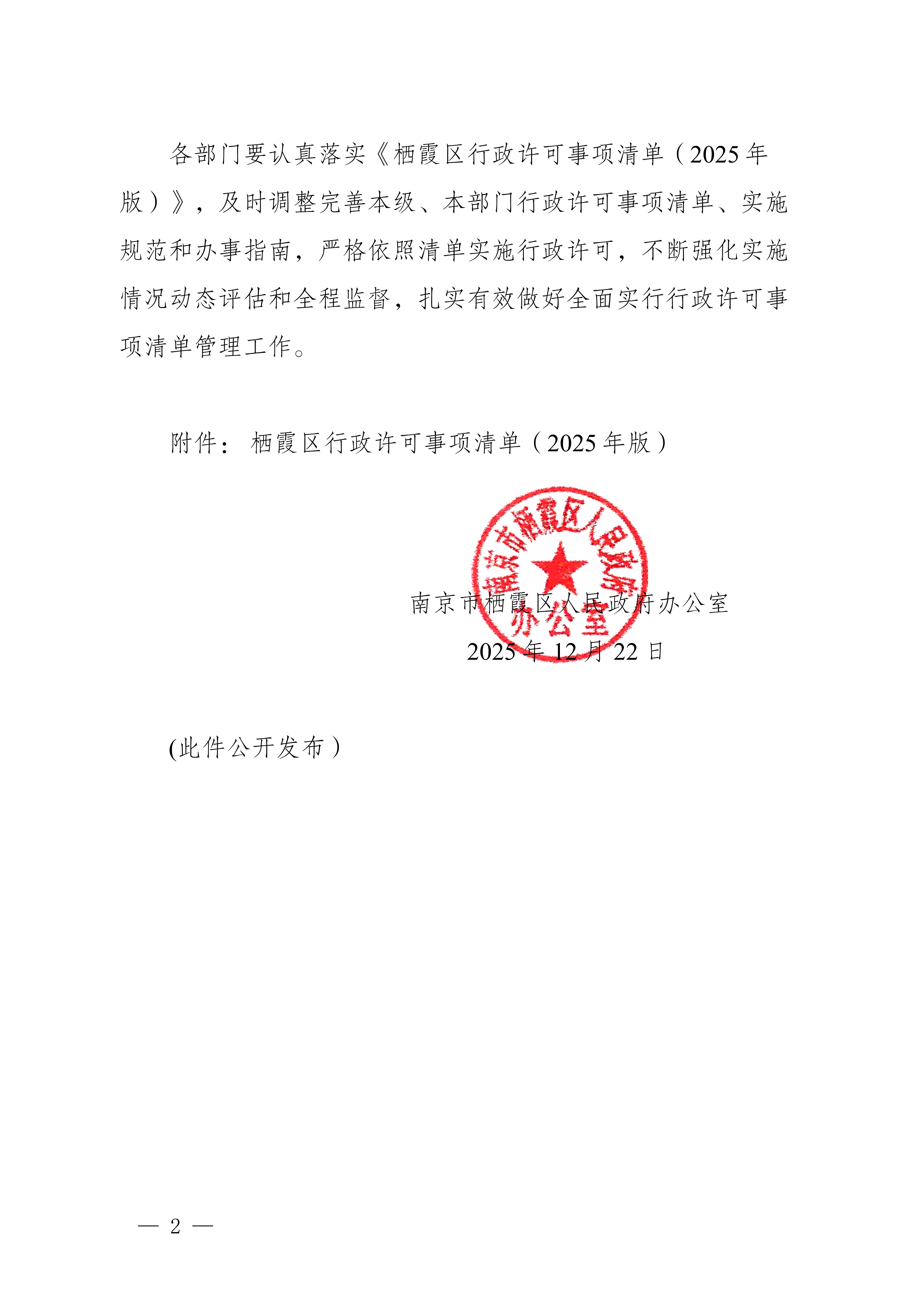 宁栖政办字〔2025〕32号 关于印发《栖霞区行政许可事项清单(2025版)》的通知