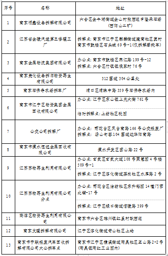 车辆报废拆解点企业名录: